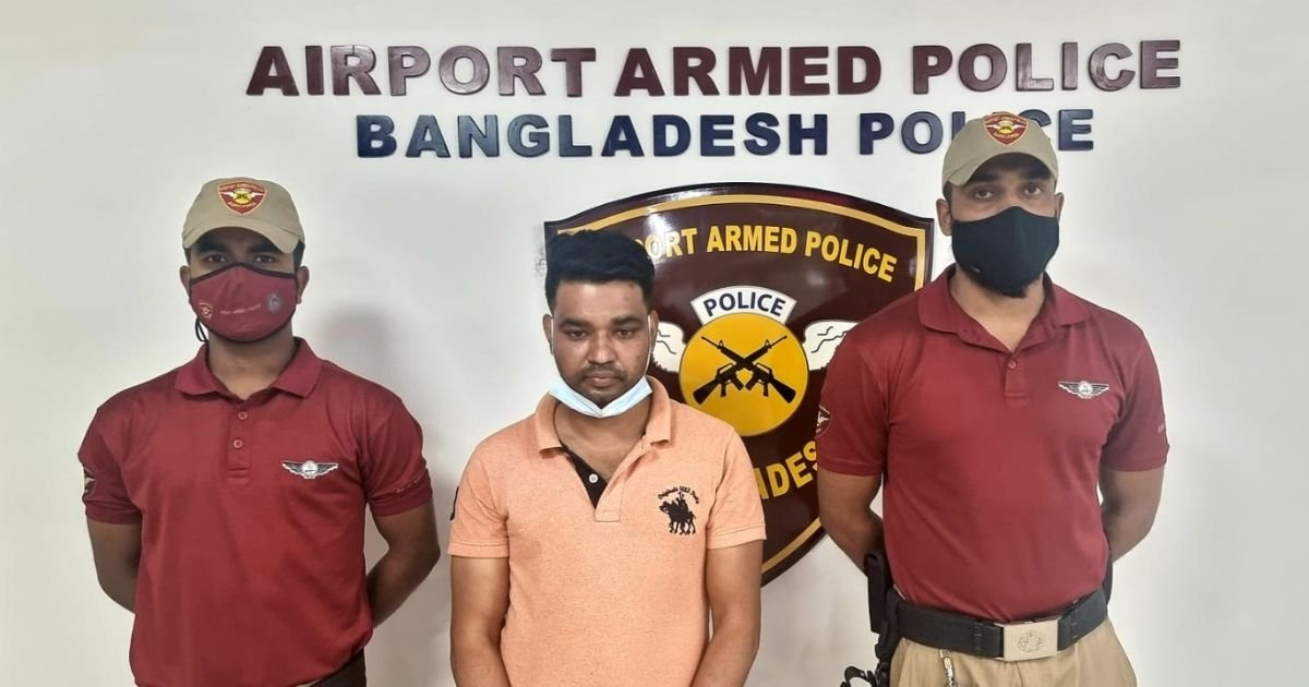কিন্তু আগে থেকেই সতর্ক অবস্থায় থাকা এয়ারপোর্ট আর্মড পুলিশের গোয়েন্দা দল বিমান বাংলাদেশ এয়ারলাইন্সের চেক ইন কাউন্টার থেকে তাকে আটক করেন।