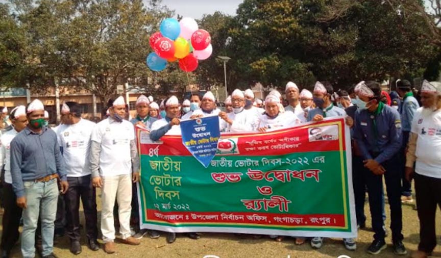 মুজিব বর্ষের অঙ্গীকার রক্ষা করব ভোটাধিকার এ প্রতিপাদ্যে রংপুরের গঙ্গাচড়ায় বুধবার (২ রা মার্চ) জাতীয় ভোটার দিবস পালন করা হয়েছে। উপজেলা নির্বাচন অফিসের উদ্যোগে জাতীয় ভোটার দিবস পালন উপলক্ষে র্যালি ও আলোচনা সভার আয়োজন করা হয়। উপজেলা নির্বাহী অফিসার এরশাদ উদ্দিন পিএএ এর সভাপতিত্বে উপজেলা পরিষদ হলরুমে আলোচনা সভায় প্রধান অতিথির বক্তব্য রাখেন উপজেলা চেয়ারম্যান ও উপজেলা আওয়ামীলীগের সভাপতি আলহাজ্ব রুহুল আমিন। সমবায় অফিসার আবতাবুজ্জামান চয়নের উপস্থাপনায় বিশেষ অতিথির বক্তব্য রাখেন মহিলা ভাইস চেয়ারম্যান রাবিয়া বেগম, সহকারি কমিশনার (ভূমি) নয়ন কুমার সাহা। আরো বক্তব্য রাখেন মডেল থানার অফিসার ইনচার্জ সুশান্ত কুমার সরকার, উপজেলা অাওয়ামীলীগের সাধারণ সম্পাদক আজিজুল ইসলাম, সমাজ সেবা অফিসার মোসাদ্দেকুর রহমান, প্রভাষক মাহবুবুর রহমান প্রমুখ। স্বাগত বক্তব্য রাখেন উপজেলা নির্বাচন অফিসার আইনুল হক। এর আগে একটি র্যারি গুরুত্বপূর্ণ সড়ক প্রদিক্ষণ শেষে উপজেলা পরিষদ মাঠে বেলুন উড়িয়ে জাতীয় ভোটার দিবসের শুভ উদ্বোধন করেন অতিথিবৃন্দ। এ সময় সরকারি দপ্তরের কর্মকর্তা, কর্মচারি, স্কাউটস সদস্যসহ বিভিন্ন পেশার ব্যাক্তিবর্গ উপস্থিত ছিলেন।