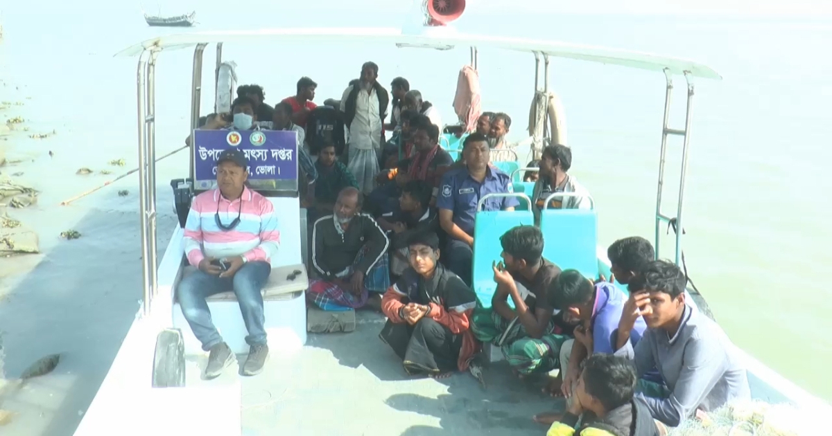 মেঘনায় নিষেধাজ্ঞা অমান্য করে মাছ ধরায় ৪৫ জেলে আটক