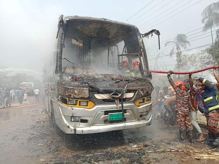 তিনি আরও জানান,‘আমরা দুপুর ১২টার দিকে আগুন লাগার খবর পেয়ে ৩৫ মিনিট চেষ্টা চালিয়ে আগুন নেভাতে সক্ষম হয়েছি। তবে বাসটির অধিকাংশ পুড়ে গেছে।