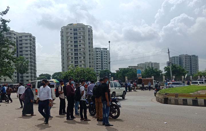 লকডাউনে নিজস্ব ব্যবস্থাপনায় কর্মীদের আনা-নেওয়ার নির্দেশনা থাকলেও তা মানেনি অধিকাংশ প্রতিষ্ঠান। কর্মীদের নিজস্ব ব্যবস্থাপনায় অফিসে যাতায়াত করতে দেখা গেছে। গণপরিবহন বন্ধ থাকায় এসব কর্মজীবী মানুষকে পড়তে হয়েছে বিপাকে। এ অবস্থায় গতকাল সোমবার সকালে অধিকাংশ মানুষকে হেঁটে, রিকশা কিংবা ভ্যানে করে গন্তব্যে পৌঁছতে দেখা গেছে। সকাল থেকে নগরীর খিলগাঁও রেলগেট, বাসাবো, মানিকনগর, সায়েদাবাদ, কমলাপুর, ফকিরাপুল, রাজারবাগ, মলিবাগ, মগবাজার, বাংলামটরসহ বিভিন্ন এলাকা ঘুরে এমন চিত্র দেখা গেছে। এসব এলাকায় কোনও স্টাফ বাস দেখা যায়নি। কর্মজীবী মানুষের ভিড়ে সড়কজুড়ে তীব্র যানজট দেখা গেছে। রিকশা ও ভ্যান খালি না পেয়ে অধিকাংশ মানুষকে হেঁটে অফিসে যেতে দেখা গেছে। দক্ষিণ সিটি করপোরেশনের চাকরি করেন আসমা আক্তার। প্রতিদিন তিনি বাস কিংবা লেগুনা যোগেই অফিসে যান। কিন্তু গতকাল সোমবার সকালে অফিসে যাওয়ার জন্য বাসা থেকে বের হয়ে কোনও যানবাহন পাননি, রিকশাও পাচ্ছেন না। বাধ্য হয়েই হেঁটে অফিসে যাত্রা দেন। জানতে চাইলে তিনি বলেন, সব লকডাউনে সরকারের শর্ত কাগজেই থাকে। আমাদের উপর বাস্তবায়ন হয় না। কষ্ট আমাদেরই করতে হয়। যাতায়াতে যে পরিমাণ ভাড়া ব্যয় হয়- তাতেই বেতনের বড় অংশ চলে যায়। রাজধানীর মানিকনগর এলাকাতেও চিত্র কিছুটা একইরকম। এই এলাকা ঘুরে দেখা যায়, এখান থেকে দল দলে মতিঝিলসহ বিভিন্ন অফিস পাড়ায় যাচ্ছেন কর্মজীবী মানুষ। গণপরিবহন না থাকায় হেঁটে কিংবা রিকশায় অফিসে যেতে হচ্ছে তাদের। আর এতে গুনতে হচ্ছে কয়েকগুণ বেশি ভাড়া। সামছুল ইসলাম নামে বেসরকারি একটি ব্যাংক কর্মকর্তা বলেন, সরকার তো বলেছে প্রতিষ্ঠানগুলো আমাদের জন্য যাতায়াত ব্যবস্থা করবে। কিন্তু কোনও ব্যবস্থাই নেই। রিকশাও পাওয়া যাচ্ছে না। ৫০ টাকার ভাড়া যাচ্ছে ১০০ টাকা। এখন বাধ্য হয়েই হাঁটা দিয়েছি।
