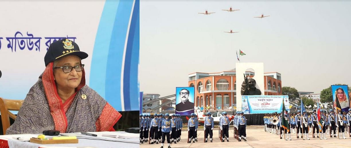 বাংলাদেশ বিমান বাহিনীর সদস্যদের জাতীয় লক্ষ্য অর্জনে পেশাগত দক্ষতা, শৃঙ্খলা ও দেশপ্রেম বজায় রাখার আহ্বান জানিয়েছেন প্রধানমন্ত্রী শেখ হাসিনা।