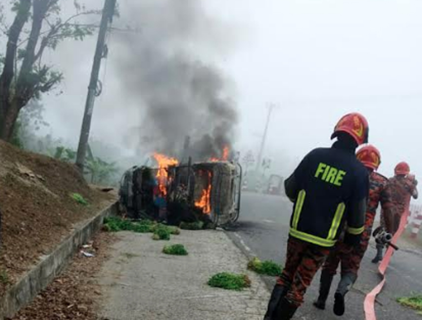 খাগড়াছড়িতে ইউপিডিএফের আধাবেলা অবরোধে যানবাহন ভাংচুর, অগ্নিসংযোগ