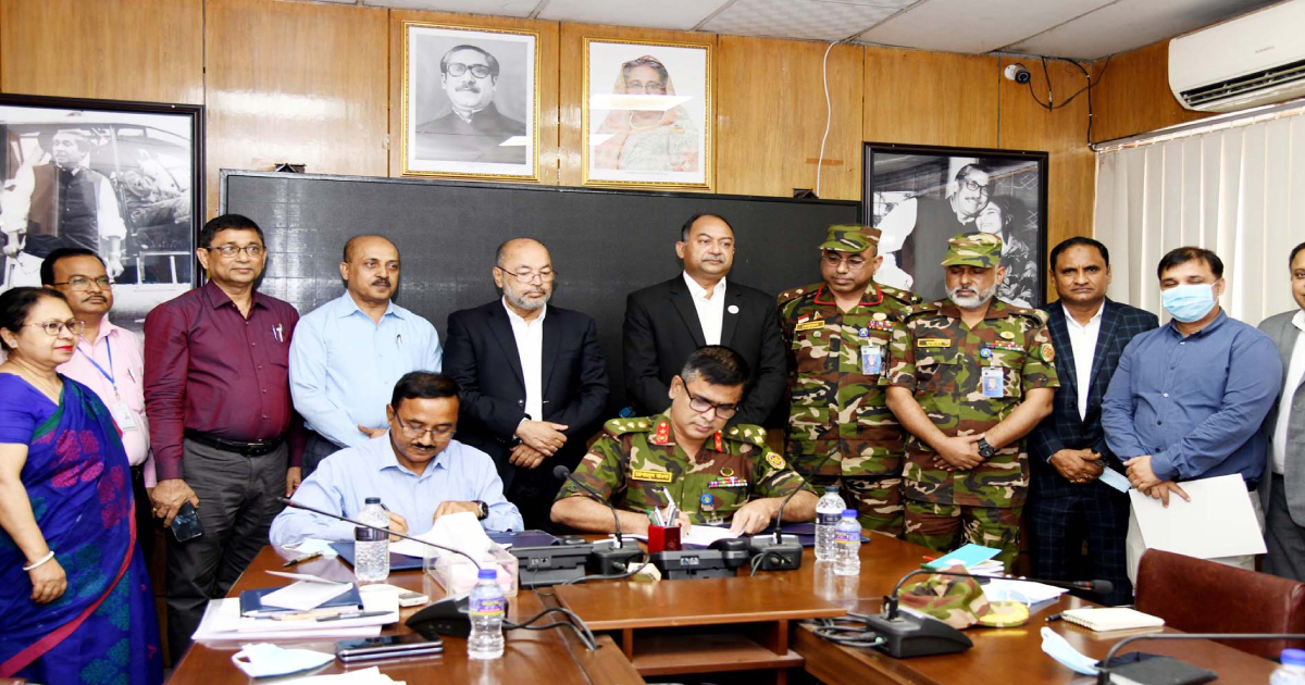 ভূমিকম্প ও অন্যান্য দুর্যোগে অনুসন্ধান,উদ্ধার অভিযান পরিচালনা ও জরুরি যোগাযোগের জন্য যন্ত্রপাতি সংগ্রহ শীর্ষক প্রকল্পের সরাসরি ক্রয় পদ্ধতিতে যন্ত্রপাতি সংগ্রহের নিমিত্ত দুর্যোগ ব্যবস্থাপনা অধিদপ্তর এবং বাংলাদেশ সেনাবাহিনীর নিয়ন্ত্রণাধীন বাংলাদেশ মেশিন টুলস ফ্যাক্টরির (বিএমটিএফ) মধ্যে সমঝোতা স্মারক স্বাক্ষরিত হয়েছে।
