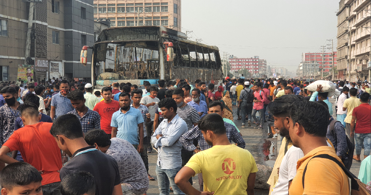 গাজীপুরে শ্রমিক নিহতের গুজবে বাসে আগুন, মহাসড়ক অবরোধ