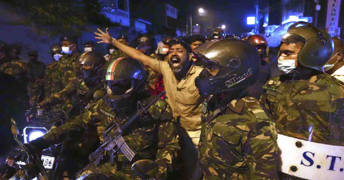 কলম্বোর উপকণ্ঠে মিরিহানাতে রাজাপাকসের ব্যক্তিগত বাসভবনে যাওয়ার সময় বিক্ষুদ্ধ জনতা দুটি সেনা বাসে পাথর ছুড়ে। বাস দুটি বিক্ষোভকারীদের প্রেসিডেন্টের বাসভবনের দিকে যেতে বাধা দেয়ার কাজে ব্যবহার করছিল পুলিশ।