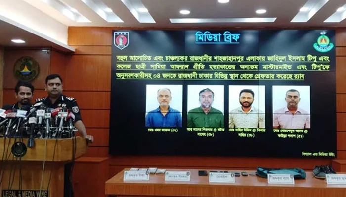 রাজধানীর শাহজাহানপুরে গুলি করে আওয়ামী লীগের এক নেতা ও এক কলেজছাত্রীকে হত্যার ঘটনায় অভিযুক্ত মাস্টারমাইন্ডসহ আরও চারজনকে গ্রেপ্তার করেছে র্যাপিড অ্যাকশন ব্যাটালিয়ন (র্যাব)।