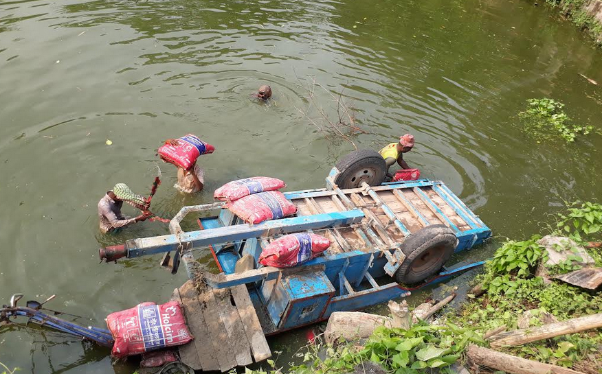 বেপরোয়া গতিতে নিয়ন্ত্রন হারিয়ে নছিমন পুকুরে