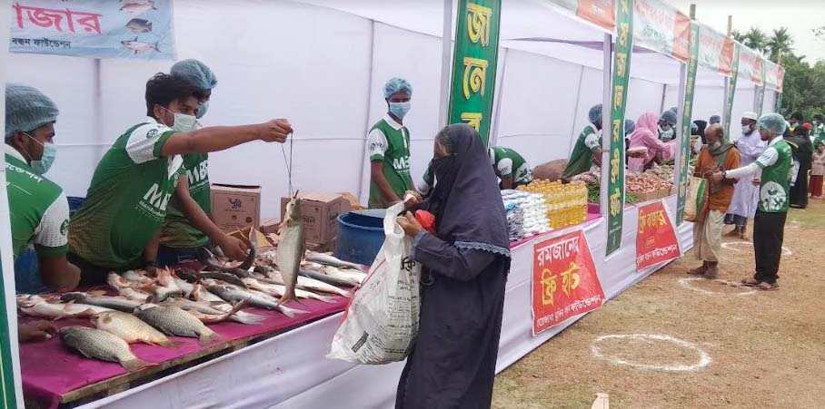 ঈশ্বরগঞ্জে পবিত্র রমজান উপলক্ষে হতদরিদ্র ক্রয় সামর্থ্যহীনদের জন্য মুক্তির বন্ধন ফাউন্ডেশন ফ্রি হাটের আয়োজন করেছে। উপজেলার আঠারবাড়ী ইউনিয়নের উত্তর বনগাঁওয়ে ইরা ফিলিং স্টেশন চত্বরে এ ফ্রি হাটের উদ্বোধন করেন জেলা প্রশাসক মো. এনামুল হক। এসময় উপস্থিত ছিলেন উপজেলা নির্বাহী কর্মকর্তা মোসা. হাফিজা জেসমিন, আঠারবাড়ী ইউনিয়ন পরিষদের চেয়ারম্যান জুবের আলম কবীর রুপক, তদন্ত কেন্দ্রের ইনচার্জ রফিকুল ইসলাম প্রমুখ। সরেজমিন ফ্রি হাটে গিয়ে দেখা যায় বিভিন্ন স্টলে স্তরে স্তরে সাজানো রয়েছে টাটকা শাক সবজি, মাছ, খেজুর, মুড়ি, তেল, লবন, পিঁয়াজ, রসুন, কাঁচা মরিচ, বেগুন, টমেটো, মিষ্টি লাউ। মুক্তির বন্ধন ফাউন্ডেশনের সমন্বয়কারী আজহারুল ইসলাম পলাশ জানান এসব পণ্য সামগ্রী ক্রয় সামর্থ্যহীন ও বিশেষ চাহিদা সম্পন্ন মানুষের মাঝে বিতরণ করা হবে । এছাড়ও লোক লজ্জার ভয়ে ফ্রি হাটে আসতে পারে না এমন মধ্যবিত্ত পরিবারের মাঝে আমাদের স্বেচ্ছাসেবকরা বাড়ি বাড়ি গিয়ে পৌঁছে দিয়ে আসবে। ফাউন্ডেশনের স্বেচ্ছাসেবক শাহনাজ পারভীন নাবিলা জানান, রমজান মাসে মোট চারটি ফ্রি হাট বসবে তন্মেধ্যে তিনটি সবজি ও একটি ঈদের হাট। এসব হাটে ১২শ অসহায় পরিবার এসব সামগ্রী পাবে। ঈদের হাটে নতুন জামা কাপড় সেমাই চিনি ও শিশুদের জন্য খেলনা বিনামূল্যে বিতরণ করা হবে। ফ্রি হাট উদ্বোধন কালে জেলা প্রশাসক মো. এনামুল হক বলেন, মুক্তির বন্ধন ফাউন্ডেশনের উদ্যোগটি একটি মহতী উদ্যোগ। ফাউন্ডেশনের এই প্রশংসনীয় কার্যক্রমটি অব্যহত রাথার স্বার্থে সমাজের বিত্তবানদের এগিয়ে আসার জন্য আহবান জানান।