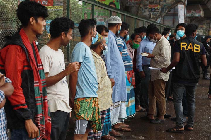 কঠোর লকডাউনের প্রথমদিন গতকাল বৃহস্পতিবার সরকারি নির্দেশনা অমান্যকারী ২৪৯ জনকে আটক করা হয়েছে, গ্রেপ্তার করা হয়েছে ৭৩ জনকে। এছাড়া এদিন ২২২টি গাড়ির বিরুদ্ধে মামলা করেছে ঢাকা মেট্রোপলিটন পুলিশ (ডিএমপি)। এতে জরিমানা করা হয়েছে ২ লাখ ৯৭ হাজার ১০০ টাকা। রেকারিং করা হয়েছে ৪৬টি গাড়ি, আর জব্দ করা হয়েছে ছয়টি। বেশিরভাগ মামলাই করা হয়েছে ওয়ারী, রমনা ও মতিঝিল বিভাগে। এ তিনটি বিভাগে যথাক্রমে ৭০ হাজার, ৫৮ হাজার ১০০ ও ৪৫ হাজার ২০০ টাকা জরিমানা করা হয়। গতকাল বৃহস্পতিবার দুপুর ১টা পর্যন্ত অভিযানের পর এসব তথ্য জানান ডিএমপির মিডিয়া অ্যান্ড পাবলিক রিলেশন্স বিভাগের অতিরিক্ত উপকমিশনার (এডিসি) ইফতেখায়রুল ইসলাম। তিনি বলেন, রাজধানীর বিভিন্ন এলাকায় সকাল থেকে সরকারি নির্দেশনা অমান্যকারীদের বিরুদ্ধে অভিযান চালায় ডিএমপির আটটি বিভাগ। অভিযানে ৭৩ জনকে গ্রেপ্তার করা হয়েছে। আটক করা হয়েছে ২৪৯ জনকে, সাজা দেয়া হয়েছে আটজনকে। ৫৬ জনকে ৬ হাজার ২০৭ টাকা এবং ১০টি দোকানকে ৩৪ হাজার ১০০ টাকা জরিমানা করা হয়েছে। রমনা বিভাগে দুজনকে জরিমানা করা হয়েছে ৪০০ টাকা করে। ৩৩টি গাড়ির মামলায় জরিমানা করা হয়েছে ৫৮ হাজার ১০০ টাকা, রেকারিং করা হয়েছে দুটি গাড়ি। লালবাগ বিভাগে গ্রেপ্তার করা হয়েছে ৩৮ জনকে। তিনজনকে জরিমানা করা হয়েছে ৩০০ টাকা। এছাড়াও ২৫টি গাড়ির বিরুদ্ধে মামলায় জরিমানা করা হয়েছে ২৫ হাজার ৬০০ টাকা। মতিঝিল বিভাগ থেকে আটক দুই ব্যক্তিকে মোট জরিমানা করা হয়েছে ১১০০ টাকা ও ৯টি দোকানকে মোট জরিমানা করা হয়েছে ১৮ হাজার ৫০০ টাকা। এছাড়াও ১৯টি গাড়ির মামলায় জরিমানা করা হয়েছে ৪৫ হাজার ২০০ টাকা। ওয়ারী বিভাগ থেকে গ্রেপ্তার করা হয়েছে তিনজনকে। ১৬ ব্যক্তির কাছ থেকে জরিমানা আদায় করা হয়েছে এক হাজার ৭০০ টাকা। এছাড়াও ১৫টি গাড়ির মামলায় জরিমানা করা হয়েছে ৭০ হাজার টাকা। তেজগাঁও বিভাগ থেকে আটক করা হয়েছে ১৬৭ জনকে। মিরপুর বিভাগ থেকে ৭৫ জনকে আটক করা হয়েছে ও ৩০ জনকে জরিমানা করা হয়েছে ১০ হাজার ৬০০। ৯৮টি গাড়ির বিরুদ্ধে মামলায় জরিমানা করা হয় ২৫ হাজার, রেকারিং দেয়া হয় ১১টি গাড়ি ও ৪টি গাড়ি জব্দ করা হয়। গুলশান বিভাগ থেকে ৭ জনকে আটক করা হয়েছে ও ৮ জনকে জরিমানা করা হয় ২ হাজার সাত টাকা। ২১টি গাড়ির বিরুদ্ধে মামলায় জরিমানা করা হয় ৬১ হাজার। উত্তরা বিভাগ থেকে ৩২ জনকে গ্রেপ্তার করা হয়েছে এবং তিনজনকে জরিমানা করা হয় ৭০০ টাকা। এছাড়াও একটি দোকানকে ৫ হাজার টাকা জরিমানা করা হয়েছে। ১১টি গাড়ির মামলায় ১২ হাজার ২০০ টাকা জরিমানা ও ৩৩টি গাড়ি রেকারিং করা হয়।