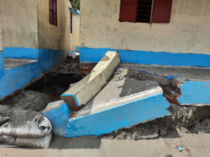 সরোজমিনে ঘটনাস্থলে গিয়ে প্রত্যক্ষদর্শীদের সাথে কথা বলে জানা যায়, গত কয়েক দিনের টানা বর্ষণে গত শুক্রবার সকালের দিকে ২৭ নাম্বার ঘরের বারান্দার কিছু অংশ এবং একটি কলম ভেঙে পড়ে। ঘরে নিচ থেকে মাটি সরে যাওয়ার কারণে এমনটা হয়েছে বলে জানায় প্রত্যক্ষদর্শীরা। পাশের ২৮নম্বর ঘরটিরও একই অবস্থা। ঘরের তলায় মাটি সরে যাওয়ার কারণে যে কোন মুহূর্তে সেটা ভেঙে পড়তে পারে। ভাঙ্গন ঝুঁকিতে রয়েছে একই সারির অন্তত ৬টি ঘর।