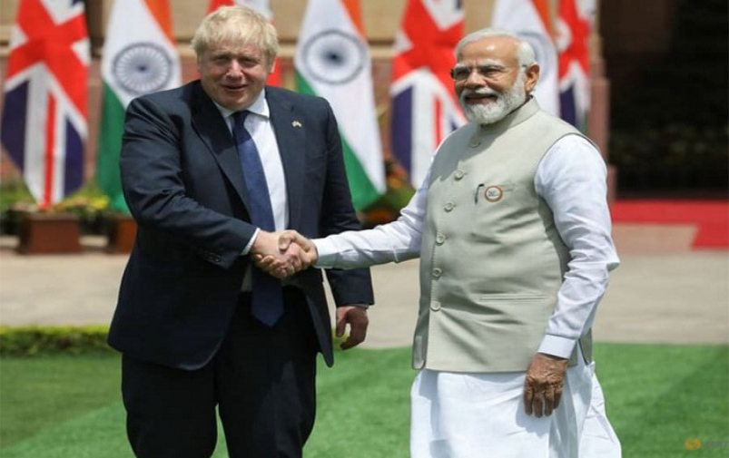 প্রতিরক্ষা এবং ব্যবসায়িক সহযোগিতা বাড়াতে ঐক্যমতে পৌঁছেছে ভারত এবং ব্রিটেন। দিল্লি সফরের দ্বিতীয় দিনে ভারতীয় প্রধানমন্ত্রীর মোদির সঙ্গে বৈঠকে এ বিষয়ে সম্মত হন ব্রিটিশ প্রধানমন্ত্রী বরিস জনসন। বরিস বলেন, দ্বিপাক্ষিক মুক্ত-বাণিজ্য চুক্তি আগামী অক্টোবর নাগাদ সম্পন্ন হতে পারে। শুক্রবার এক প্রতিবেদনে জানিয়েছে বার্তা সংস্থা রয়টার্স। ব্রিটিশ প্রধানমন্ত্রী হিসেবে দায়িত্ব নেওয়ার পর প্রথমবার ভারতের রাজধানী দিল্লি সফর এসেছেন বরিস জনসন। সফরে প্রধানমন্ত্রী মোদির সঙ্গে সাক্ষাতে দুই দেশের দ্বিপাক্ষিক সম্পর্ক উন্নয়ন এবং নিরাপত্তার ইস্যুতে আরও জোর দেন বরিস। ব্রিটেন আশা করে যে পশ্চিমের সঙ্গে ঘনিষ্ঠ নিরাপত্তা সম্পর্কের প্রস্তাব রাশিয়ার ওপর ভারতের প্রতিরক্ষা নির্ভরতা কমাতে উৎসাহিত করবে মনে করেন ব্রিটিশ প্রধানমন্ত্রী। জনসন তার দুই দিনের সফরের শেষ দিনে মোদির সঙ্গে এক যৌথ সংবাদ সম্মেলনে বলেন, আমাদের মধ্যে দারুণ আলোচনা হয়েছে। এতে আমাদের সম্পর্ককে আরও মজবুত করবে। সংবাদ সম্মেলনে বরিস বলেন, আমরা প্রতিরক্ষা এবং নিরাপত্তা অংশীদারিত্বে সম্মত হয়েছি। ব্রিটিশ সংবাদমাধ্যমটি জানিয়েছে, ২০২২ সালের শেষ নাগাদ একটি বাণিজ্য চুক্তিতে পৌঁছানোর লক্ষ্যে দুই দেশের প্রতিনিধিরা এরইমধ্যে আলোচনা শুরু করেছেন। আগামী সপ্তাহে এ আলোচনার তৃতীয় পর্যায় শুরু হবে। জনসন বলেন, সামরিক সরঞ্জামের ব্যয়বহুল আমদানি কমাতে ভারতের নিজস্ব ফাইটার জেট তৈরির প্রচেষ্টাকে সহায়তা করবে ব্রিটেন। ভারতের বিমান বাহিনীর বহরে এখন রাশিয়া, ব্রিটিশ এবং ফরাসির তৈরি যুদ্ধবিমান রয়েছে।