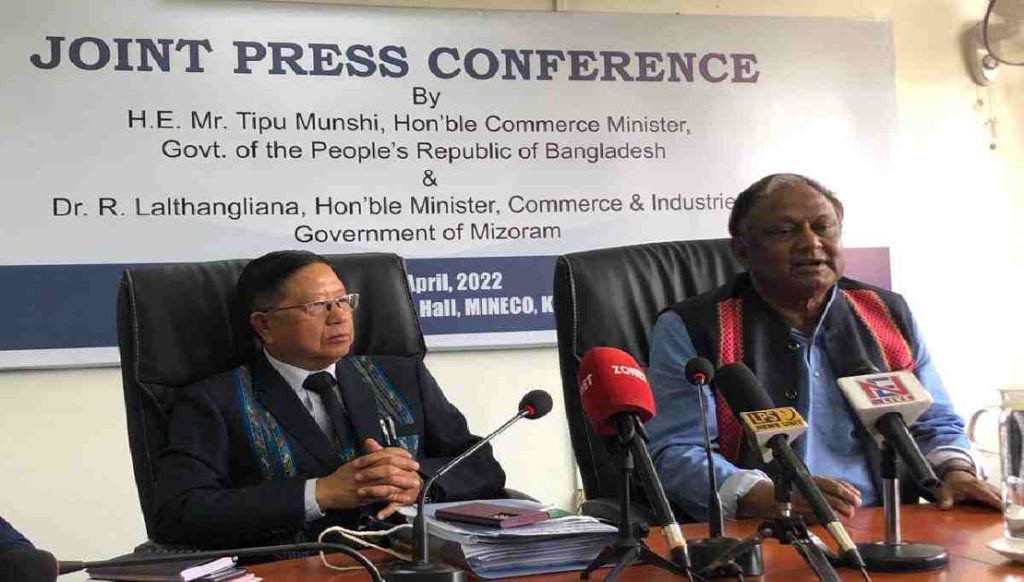 বাণিজ্যমন্ত্রী টিপু মুনশি ভারতে তার সাম্প্রতিক সফরে মিজোরামের বাণিজ্য ও শিল্পমন্ত্রী আর. লালথাংলিয়ানার সঙ্গে সীমান্ত বাণিজ্যের প্রচার নিয়ে আলোচনা করেছেন।