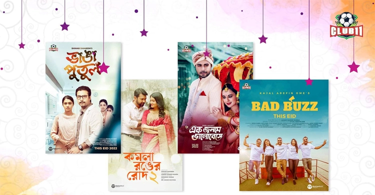 ঈদ উল ফিতর উপলক্ষে প্রযোজনা প্রতিষ্ঠান ক্লাব ইলেভেন নির্মাণ করেছে ৪টি নাটক। হালের আলোচিত নির্মাতারা নির্মাণ করেছেন এই নাটকগুলো। এগুলোতে অভিনয় করেছেন দেশের জনপ্রিয় সব তারকা অভিনেতা-অভিনেত্রী। শিহাব শাহীন নির্মাণ করেছেন ‘ভাঙ্গা পুতুল’ ও ‘কমলা রঙের রোদ-২’ শিরোনামের নাটক দুটি। এগুলো রচনা করেছেন ডাক্তার জাহান সুলতানা। ‘ভাঙা পুতুল’ নাটকের বিভিন্ন চরিত্রে অভিনয় করেছেন আফরান নিশো, তাসনিয়া ফারিন, খালেকুজ্জামান প্রমুখ। ‘কমলা রঙের রোদ-২’ নাটকটিতে দেখা যাবে তাহসান ও তাসনিয়া ফারিনের অভিনয়। কাজল আরেফিন অমির নির্মাণে থাকছে ‘ব্যাড বাজ’। এতে অভিনয় করেছেন সাফা কবির, জিয়াউল হক পলাশ, মিশু সাব্বির, পারসা ইভানা, সাইদুর রহমান পাভেল, শরাফ আহমেদ জীবন প্রমুখ। রুবেল হাসান নির্মাণ করেছেন অসাধারণ ভালোবাসার গল্পে নির্মিত নাটক ‘এক জনমে ভালোবেসে’। নাটকের বিভিন্ন চরিত্রে অভিনয় করেছেন জিয়াউল ফারুক অপূর্ব, সাবিলা নূরসহ আরও অনেকে। মোশনরক এন্টারটেইনমেন্ট এর সার্বিক তত্বাবধায়নে নির্মত এই নাটকগুলোর নির্বহী প্রযোজনার দায়িত্বে ছিলেন মাসুদুল হাসান। ঈদে ‘ক্লাব ইলেভেন’ ইউটিউব চ্যানেলে প্রচার হবে নাটকগুলো। প্রযোজক আকবর হায়দার মুন্না জানান, ‘মানুষের জীবনে ঘটে যাওয়া প্রেম-বিরহ, প্রাপ্তি-অপ্রাপ্তি, মায়া-মমতা, দায়িত্ব এবং দায়বদ্ধতার মিশেলে নির্মিত হয়েছে এই নাটকগুলো। তিনি আশা প্রকাশ করছেন, নাটক গুলো দর্শকের হৃদয় ছুঁয়ে যাবে।’