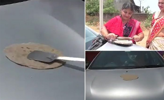 গরমে গাড়ির বনেটে রুটি সেঁকছেন গৃহবধূ!