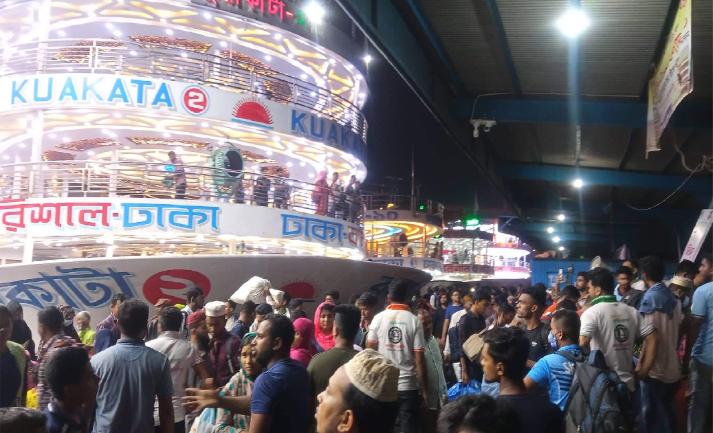 ঈদযাত্রা: বরিশাল লঞ্চঘাটে যাত্রী কানায় কানায় পূর্ণ