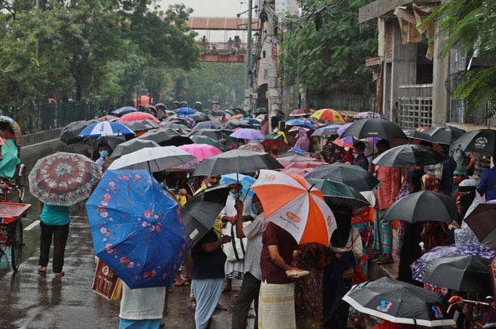 রামপুরা লোহার গেট এলাকায় ওএমএসের চালের জন্য লাইনে দাঁড়ানো শাহাবুদ্দিন বলেন, চালের জন্য সকাল ৯টায় লাইনে দাঁড়িয়েছি। ১০টার দিকে চাল বিক্রি শুরু হয়। পাঁচ কেজি চালের জন্য এক-দেড় ঘণ্টা লাইনে দাঁড়াতে হয়। এরপরও চাল কিনতে পারলে খুশি। মোহাম্মদপুর বসিলা রোডে ওএমএসের ট্রাকের সামনে জামিলা বেগম বলেন, ৩০ টাকা করে পাঁচ কেজি চাল কিনতে পারলে, বাজারে থেকে ১০০ টাকা কম দাম পড়ে। এজন্য ওএমএসের চাল কিনি। এখন যে চাল দেয়া হচ্ছে, সেটি মানে ভালো। এদিকে, ক্রেতার চাপ বেশি থাকায় কিছুটা কম দামে জীবন ধারণের অপরিহার্য এ দুটি পণ্যর চাহিদা মেটাতে হিমশিম খাচ্ছেন ডিলাররা। ওএমএসের চাল ও আটা বরাদ্দ পাওয়া রাজধানীর বিভিন্ন অঞ্চলের ডিলারদের সঙ্গে কথা বলে জানা গেছে, লকডাউনের পর থেকে ক্রেতাদের চাপ অনেক বেশি। তারা যে চাল ও আটা বরাদ্দ পাচ্ছেন, তা অল্প সময়ের মধ্যেই বিক্রি হয়ে যাচ্ছে। ডিলারদের দাবি, ক্রেতাদের চাহিদার তুলনায় বরাদ্দের পরিমাণ কম। বর্তমানে একজন ডিলার সর্বোচ্চ দেড় মেট্রিক টন চাল ও এক মেট্রিক টন আটা বরাদ্দ পান। এ বরাদ্দের পরিমাণ বাড়িয়ে দিলে ক্রেতাদের চাহিদা মেটানো যাবে। চাল ও আটার বিক্রি পরিস্থিতি সম্পর্কে জানতে চাইলে রামপুরার ওএমএস ডিলার খলিল বলেন, এখন চাল ও আটার জন্য ক্রেতাদের অনেক চাহিদা। আমি এক হাজার ২০০ কেজি চাল ও এক হাজার কেজি আটা পাই। এ চাল ও আটা দেখতে দেখতে বিক্রি হয়ে যায়। ক্রেতাদের যে চাহিদা আমাকে তিন মেট্রিক টন (৩ হাজার কেজি) চাল দিলেও একদিনের মধ্যে শেষ হয়ে যাবে। আরেক ডিলার বলেন, বাজারে এখন চাল ও আটার চাহিদা অনেক বেশি। এ কারণে নিম্ন আয়ের মানুষরা ওএমএসের চাল কিনতে ছুটে আসছে। করোনা শুরুর পর থেকেই চাল-আটার জন্য মানুষের চাহিদা দেখছি। অনেকে সকাল ৬টায় এসে লাইনে দাঁড়িয়ে থাকেন। ক্রেতাদের যে চাহিদা তাতে চাল ও আটা বিক্রি করতে আমাদের হিমশিম খেতে হয়।