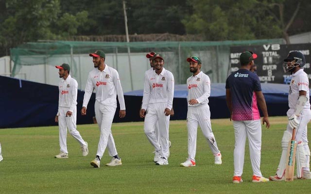একটি মাত্র প্রস্তুতি ম্যাচ। বাংলাদেশের বিপক্ষে মূল লড়াই শুরুর আগে শ্রীলঙ্কা দলের নিজেদের কিছুটা গুছিয়ে নেওয়ার সুযোগ এই একটিই। কিন্তু প্রকৃতি সেই পথে বাধা হয়ে দাঁড়াল। বৃষ্টির বাগড়ায় কয়েক ওভার খেলার পরই ভেস্তে গেল প্রথম দিন। বিকেএসপিতে মঙ্গলবার (১০ মে) শুরু হয়েছে শ্রীলঙ্কা ও বিসিবি একাদশের দুই দিনের প্রস্তুতি ম্যাচ। কেবল ৮.৩ ওভার ব্যাটিং করার সুযোগ পাওয়া লঙ্কানরা এক উইকেট হারিয়ে করতে পেরেছে ১৪ রান। প্রতিপক্ষ অধিনায়ক দিমুথ করুনারতেœকে ফিরিয়ে দিয়েছেন মুকিদুল ইসলাম। ষষ্ঠ ওভারে এই পেসারের বাউন্সারে কিপার এনামুল হকের গ্লাভসে ধরা পড়েন ২ রান করা করুনারতেœ। আসিথা ফার্নান্দোর সঙ্গে উইকেটে আছেন কদিন আগে ঢাকা প্রিমিয়ার লিগে খেলা কুসল মেন্ডিস। আকাশ মেঘলা ছিল সকাল থেকেই। এর মাঝেই টস জিতে ব্যাটিংয়ের সিদ্ধান্ত নেয় শ্রীলঙ্কা। আধ ঘণ্টার মতো খেলা চলার পর ঠিকই হানা দেয় বৃষ্টি। তাতে প্রস্তুতির প্রথম দিনটি ভালো হলো না তাদের। প্রস্তুতি ম্যাচ শেষে লঙ্কানরা যাবে প্রথম টেস্টের শহর চট্টগ্রামে। আগামী রোববার থেকে শুরু প্রথম টেস্ট। দ্বিতীয় টেস্ট ২৩ মে থেকে মিরপুরে। মুমিনুল হকের নেতৃত্বে বাংলাদেশ দল চট্টগ্রামে রোববার রাতেই পৌঁছে গেছে। গত সোমবার থেকে শুরু করছে তারা নিজেদের ঝালিয়ে নেওয়ার কার্যক্রম।