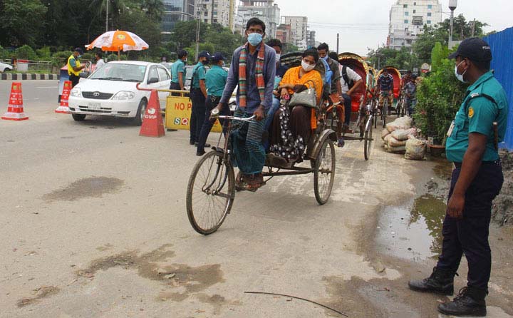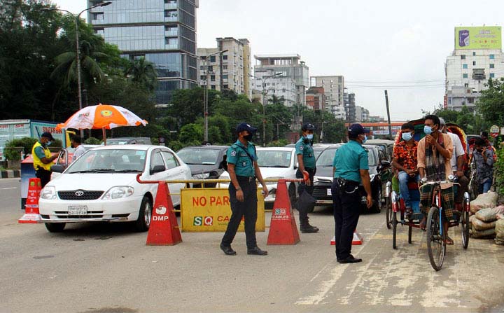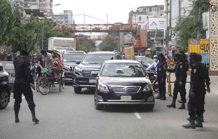 মহামারি করোনাভাইরাসের সংক্রমণ নিয়ন্ত্রণে সরকার চলাচলের ওপর কঠোর বিধিনিষেধ আরোপ করলেও ব্যাংক, বীমা, শেয়ারবাজার, গার্মেন্টসসহ বিভিন্ন শিল্প কারখানা চালু রয়েছে। ফলে কর্মজীবী মানুষগুলোকে প্রতিদিন অফিসে ছুটতে হচ্ছে। কর্মীদের অফিস যাতায়াতের জন্য কোনো কোনো প্রতিষ্ঠান নিজস্ব পরিবহনের ব্যবস্থা করেছে। ভাড়া করা বড় বাসও রয়েছে এ তালিকায়। যাদের অফিসের নিজস্ব পরিবহন ব্যবস্থা নেই তারা কেউ রিকশা, কেউ মোটরসাইকেলে, কেউ হেঁটে অফিস যাতায়াত করছেন। অবশ্য বেশি ব্যবহৃত হচ্ছে ব্যক্তিগত গাড়ি। অনেকটা অবাধেই চলছে এসব ব্যক্তিগত গাড়ি। এর সঙ্গে ভাড়ায় চালিত মোটরসাইকেলেও যাত্রী নিয়ে অবাধে চলাচল করতে দেখা যাচ্ছে। যেসব এলাকায় বিশেষ অভিযান চলছে না, সেখানে এসব ব্যক্তিগত গাড়ি, ভাড়ায় চালিত মোটরসাইকেল চলাচলে কোনো ধরনের বাধা পেতে দেখা যায়নি। বৃহস্পতিবার ( ৮ জুলাই) সকালে রাজধানীর রামপুরা এলাকা ঘুরে দেখা যায়, কয়েকটি বড় বাস যাত্রী নিয়ে ছুটে চলছে। এ বাসগুলো কোনো না কোনো কোম্পানির ভাড়া করা। বড় বাসের পাশাপাশি প্রচুর ব্যক্তিগত গাড়ি চলাচল করতে দেখা গেছে। এমনকি ভাড়ায়চালিত মোটরসাইকেলও যাত্রী নিয়ে চলাচল করতে দেখা গেছে। রামপুরা থেকে মালিবাগ, মৌচাক, মগবাজার, কাকরাইল, পল্টন, মতিঝিল এলাকায়ও একই দৃশ্য দেখা গেছে। স্বাভাবিক সময়ের তুলনায় গাড়ির চাপ কম থাকলেও এসব অঞ্চলে ট্রাফিকের দায়িত্বপালনকারীদের বেশ তৎপর দেখা যায়। তবে কোনো গাড়িতে তল্লাশি করার দৃশ্য দেখা যায়নি।