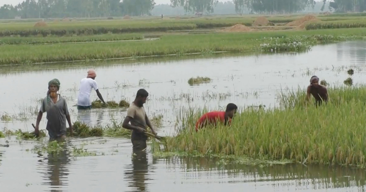 কুড়িগ্রামে তিন দিনের বৃষ্টিতে জলমগ্ন পাকা ধান বিনষ্টের আশঙ্কা