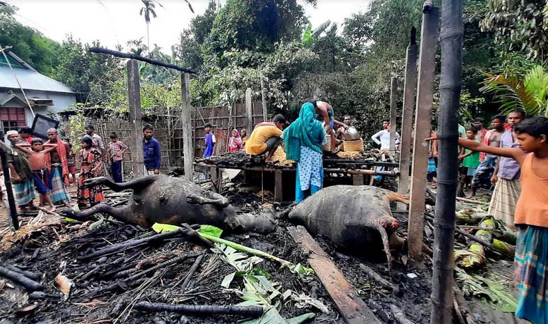জানা যায়, ওই গ্রামের মৃত আশরাফ আলীর ছেলে এনামুল হকের(৩১) গোয়াল ঘর থেকে সৃষ্ট আগুনে দুইটি গরু, ধান, চাল ও হাঁস মুরগি পুড়ে প্রায় ৩লাখ টাকার ক্ষয়ক্ষতি সাধিত হয়।