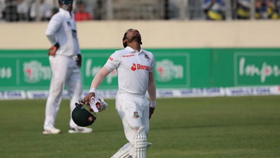 দ্বিতীয় টেস্টে দ্বিতীয় দিনের প্রথম সেশনটা ছিল শ্রীলঙ্কার। প্রথম সেশনে ৪ উইকেট তুলে বাংলাদেশকে দ্বিতীয় সেশনে অলআউট করেছে ৩৬৫ রানে। প্রথম ইনিংসে স্বাগতিকদের গুটিয়ে দেওয়ার পর ব্যাট হাতেও লঙ্কানরা জবাব দিচ্ছে ভালোভাবে। তাতে সব মিলে দ্বিতীয় দিনটা হয়ে থাকলো সফরকারীদের। অবশ্য ওপেনিং জুটিতে ৯৫ রান যোগ করার পর মনে হচ্ছিল দ্বিতীয় উইকেট জুটিতে অবিচ্ছিন্ন থেকেই বুঝি তারা দিনটা শেষ করতে যাচ্ছে। কিন্তু তৃতীয় সেশনের শেষ দিকে তাদের অস্বস্তিতে ফেলে দেন সাকিব। তার ঘূর্ণিতে পড়েছে দ্বিতীয় উইকেট। তার পরেও লঙ্কানরা ৪৬ ওভারে ২ উইকেটে ১৪৩ রান নিয়ে দ্বিতীয় দিন শেষ করেছে। পিছিয়ে আছে ২২২ রানে। শুরুর দারুণ জুটি ভাঙার পর দিমুথ করুনারত্নে-কুশল মেন্ডিস জমে যাওয়ার চেষ্টা করছিলেন। তারা মিলে যোগ করেন ৪৪ রান। কিন্তু সাকিব শেষ দিকে এসে লেগ বিফোরের ফাঁদে ফেলে বিদায় দেন কুশল মেন্ডিসকে। ৪৯ বল খেলা লঙ্কান ব্যাটার করতে পারেন মাত্র ১১ রান। দিনের শেষভাগে এই ব্যাটার ফেরায় লঙ্কানরা আর ঝুঁকি নিতে চায়নি। পেসার কাসুন রাজিথাকে নাইটওয়াচম্যান বানিয়ে দিনটা নির্বিঘ্নে শেষ করেছে। অপরপ্রান্তে ৭০ রানে অপরাজিত আছেন লঙ্কান অধিনায়ক দিমুথ করুনারত্নে। জীবন পাওয়া এই ব্যাটার ১২৭ বল খেলে দিন শেষ করেছেন। ১১ বল খেলা রাজিথা এখনও রানের খাতা খুলতে পারেননি। ৯ ওভারে ৩১ রানে একটি উইকেট নিয়েছেন এবাদত। সমান ওভারে ১৯ রান খরচ করে সাকিব নিয়েছেন একটি। প্রথম ইনিংসে দারুণ শুরু করেছিলেন দুই লঙ্কান ওপেনার। উদ্বোধনী জুটিতে তুলে ফেলে ৯৫ রান। ওশাডা ফার্নান্ডো অবশ্য প্রথম ওভারেই ফিরে যেতে পারতেন। খালেদ আহমেদের বল ব্যাটে লেগেছে ভেবে আম্পায়ার আঙুল তুলে দিলেও রিভিউ নেন লঙ্কান ব্যাটার। রিভিউতে দেখা যায় বল প্যাডে লেগে কিপারের গ্লাভসে জমা পড়েছে। ১৪.৪ ওভারে তাইজুলের বলে লেগ বিফোরের আবেদন উঠেছিল। এবারও ব্যাটার ওশাডা। আম্পায়ার আউট দেননি যদিও। বাংলাদেশ রিভিউ নিলে দেখা যায় বল স্টাম্পে আঘাত করলেও আম্পায়ার্স কলে বেঁচে গেছেন লঙ্কান ওপেনার। এই সুযোগে দ্রুত ব্যাট চালিয়ে তিনি পঞ্চম ফিফটি তুলে নিয়েছেন। সফরকারীদের চাপে ফেলবার মুহূর্তে সূবর্ণ সুযোগটি নষ্ট করেন সাকিব। ১৮তম ওভারে তার বলে ওশাডা ফিরতি ক্যাচ দিয়েছিলেন। কিন্তু সাকিব তা হাতেই জমাতে পারলেন না। চায়ের বিরতির পর তাকে গ্লাভসবন্দি করান এবাদত। বেশ কয়েক বার জীবন পাওয়া ওশাডা শেষ পর্যন্ত ফেরেন ৯১ বলে ৫১ রান করে। এক ওভার পর তাইজুলের বলে ফিরতে পারতেন অধিনায়ক করুনারতেœও। তাহলে লঙ্কানদের চাপে ফেলা যেত। কিন্তু শর্ট লেগে তার ক্যাচ উঠলেও সেটি লুফে নিতে পারেননি মাহমুদুল হাসান জয়। জীবন পাওয়ার পর ২৯তম ফিফটি তুলে নেন লঙ্কান অধিনায়ক