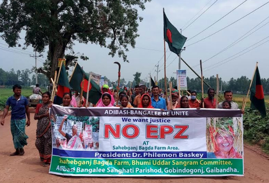 তিন ফসলি জমিতে ইপিজেড নির্মাণের সিদ্ধান্ত বাতিলের দাবিতে আজ বুধবারও গাইবান্ধার গোবিন্দগঞ্জে বিক্ষোভ মিছিল ও সমাবেশ করে সাঁওতালরা। তারা মিছিলে শ্লোগান দেয়, জীবন দিব, তবু রক্তেভেজা জমি ছাড়বো না। ইপিজেডের জন্য আজ গোবিন্দগঞ্জ উপজেলার সাহেবগঞ্জ এলাকায় বেপজার জড়িপ করার খবর শুনে সাঁওতালরা এই কর্মসুচি পালন করে। সকাল সাড়ে নয়টা থেকে তারা ব্যানার ফেষ্টুন তির ধনুক হাতে উপজেলার কাটামোড় এলাকায় অবস্থান নেয়। এদিকে সাঁওতালদের বিক্ষোভ কর্মসুচি দেখে বেপজার জড়িপ কাজ সম্পন্ন হয়নি।