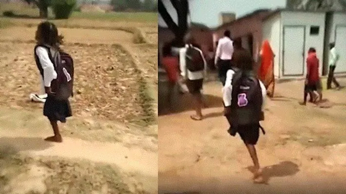 এক পায়ে ১ কিলোমিটার হেঁটে স্কুলে যায় ১০ বছরের মেয়েটি