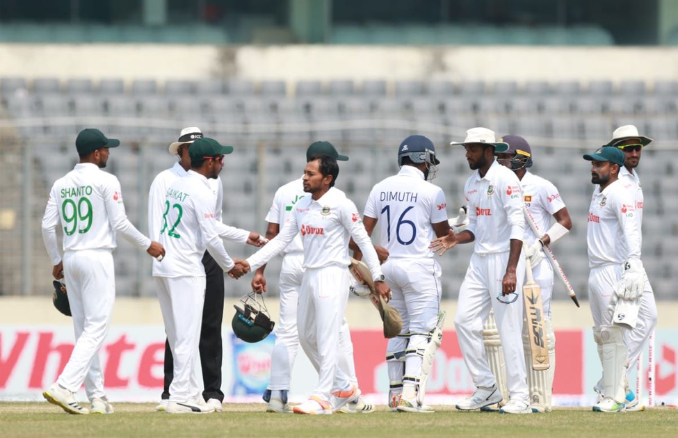 আসিথা ফার্নান্দোর বলে উপড়ে গেল সৈয়দ খালেদ আহমেদের মিডল স্টাম্প। শূন্য রানে বাংলাদেশের শেষ ব্যাটসম্যানের বিদায়ে শেষ হলো দলের ইনিংস। একই সঙ্গে অনাকাক্সিক্ষত এক বিশ্বরেকর্ডেও নাম লেখা হয়ে গেল বাংলাদেশের। এক টেস্টে ৯ শূন্য! শ্রীলঙ্কার বিপক্ষে ১০ উইকেটে হেরে যাওয়া মিরপুর টেস্টে বাংলাদেশের ৯ ব্যাটসম্যান আউট হন শূন্য রানে। টেস্ট ক্রিকেটের ১৪৫ বছরের ইতিহাসে এক ম্যাচে সবচেয়ে বেশি ব্যাটসম্যানের খালি হাতে বিদায় নেওয়ার রেকর্ড এটিই। বাংলাদেশ এখানে স্পর্শ করল শ্রীলঙ্কা ও ওয়েস্ট ইন্ডিজের রেকর্ড। বিব্রতকর এই রেকর্ডের পথে বাংলাদেশ অনেকটা এগিয়ে যায় প্রথম ইনিংসেই। ৬ জন শূন্য রানে ফিরে তখন ছুঁয়ে ফেলে এক ইনিংসে সবচেয়ে বেশি শূন্য রানে আউটের রেকর্ড। দ্বিতীয় ইনিংসে আরও ৩ ব্যাটসম্যানের শূন্য রানে বিদায়ে ম্যাচের রেকর্ডও হয়ে যায়। অভিজ্ঞ ওপেনার তামিম ইকবাল ক্যারিয়ারে প্রথমবারের মতো ‘পেয়ার’ পান এই টেস্টে, মানে দুই ইনিংসেই শূন্য রানে আউট হন। এ ছাড়া শূন্যতে ফেরেন প্রথম ইনিংসে মাহমুদুল হাসান জয়, সাকিব আল হাসান, মোসাদ্দেক হোসেন, ইবাদত হোসেন ও খালেদ। দ্বিতীয় ইনিংসেও শূন্যতে ফিরে খালেদ পান ‘পেয়ার’, এছাড়াও শূন্যতে ফেরেন এবার অধিনায়ক মুমিনুল হক। এবারের আগে বাংলাদেশের সর্বোচ্চ শূন্য ছিল ৮টি, ২০১৮ সালে ওয়েস্ট ইন্ডিজের বিপক্ষে জ্যামাইকা টেস্টে। এক ম্যাচে ৯ শূন্য প্রথম কোনো দলের হয়েছিল ১৯৯০ সালে। ভারতের বিপক্ষে চন্ডিগড়ে সেই অভিজ্ঞতা হয়েছিল অর্জুনা রানাতুঙ্গার শ্রীলঙ্কার। এরপর ২০০০ সালে অস্ট্রেলিয়ার বিপক্ষে ব্রিজবেন টেস্টে ওয়েস্ট ইন্ডিজের ৯ ব্যাটসম্যানও আউট হন শূন্য রানে। এবার শ্রীলঙ্কা ও ওয়েস্ট ইন্ডিজের সঙ্গী হলো বাংলাদেশ। বাংলাদেশের ৯ শূন্যের সঙ্গে এই ম্যাচে শ্রীলঙ্কার ২ ব্যাটসম্যান আউট হন কোনো রান না করে। দুই দল মিলিয়ে ম্যাচে ১১ শূন্যও বিশ্বরেকর্ড। তবে এই ম্যাচ ছুঁয়েছে আরও ১২টি ম্যাচকে। এবারের আগে সবশেষ ১১ শূন্যের ম্যাচেও ছিল বাংলাদেশ, ২০১৮ সালে ওয়েস্ট ইন্ডিজের বিপক্ষে জ্যামাইকায়।