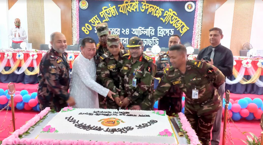 রোববার(৫ জুন) ২৪ আর্টিলারী ব্রিগেডের ৪০ তম প্রতিষ্ঠাবার্ষিকী উপলক্ষে গুইমারা রিজিয়ন সদরে আয়োজিত প্রীতিভোজ অনুষ্ঠানে প্রধান অতিথির বক্তব্যে তিনি এ কথা বলেন। অনুষ্ঠানে অন্যান্যের মধ্যে খাগড়াছড়ি পার্বত্য জেলা পরিষদের চেয়ারম্যন মংসুইপ্রু চৌধুরী অপু, সাবেক জেলা পরিষদ চেয়ারম্যান কংজরী চৌধুরী, ডিজিএফআই খাগড়াছড়ি ডেট কমান্ডার কর্ণেল সরদার ইসতিয়াক আহম্মেদ, বিজিবির গুইমারা সেক্টর কমান্ডার কর্নেল আব্দুল মালেক, রামগড় ৪৩ বিজিবির অধিনায়ক লে.কর্নেল মো: হাফিজুর রহমান, পলাশপুর জোন অধিনায়ক লেঃ কর্ণেল সৈয়দ সালাউদ্দিন নয়ন, ৩ফিল্ড রেজিমেন্ট আর্টিলারী সিন্দুকছড়ি জোন অধিনায়ক লেঃ কর্ণেল দেওয়ান মঞ্জুরুল হক, ২৬ ফিল্ড রেজিমেন্ট আর্টিলারী লক্ষ্মীছড়ি জোন অধিনায়ক লেঃ কর্ণেল মো: জাহাংগীর আলম, ১৫ফিল্ড রেজিমেন্ট আর্টিলারী মাটিরাঙ্গা জোন অধিনায়ক লেঃ কর্ণেল মঞ্জুরুল কবির, রামগড় উপজেলা চেয়ারম্যান বিশ্ব প্রদীপ কুমার কারবারি, পৌরসভার মেয়র রফিকুল আলম কামাল, মাটিরাঙ্গা পৌর মেয়র শামছুল হক, জেলা পরিষদের সদস্য মো: মাঈন উদ্দিনসহ বিভিন্ন সামরিক, বেসামরিক পদস্থ কর্মকর্তাগন ও জনপ্রতিনিধিরা উপস্থিত ছিলেন।