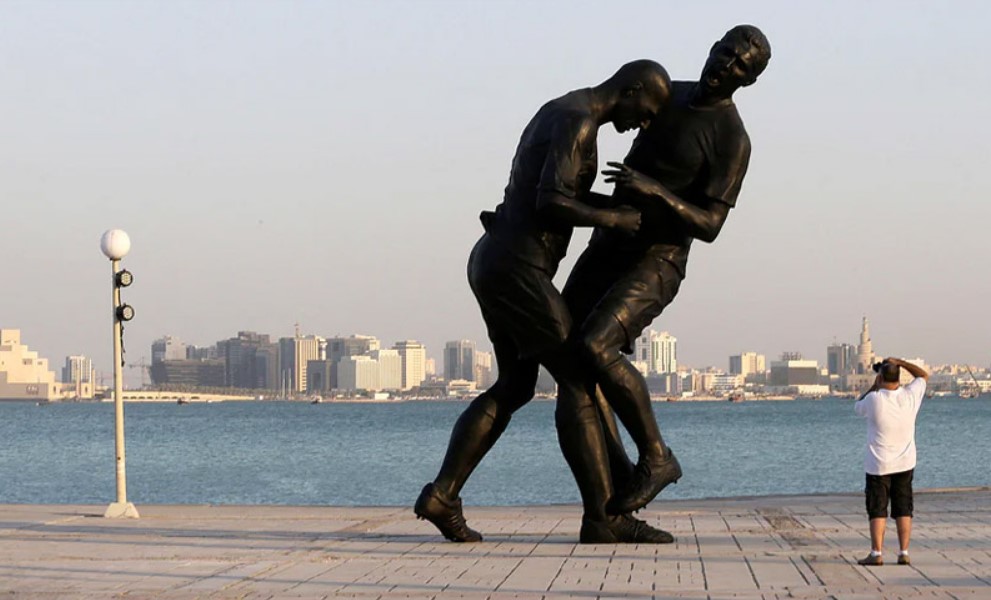 ২০০৬ বিশ্বকাপে ফরাসি সুপারস্টার জিনেদিন জিদানের সেই ঢুসের কথা ফুটবল ইতিহাসে স্থায়ী জায়গা পেয়ে গেছে। মাঝেমধ্যে নিয়মিতভাবেই সেই ঘটনা সামনে চলে আসে। কাতার বিশ্বকাপকে সামনে রেখে আবারও আলোচনায় জিদানের ঢুস। অবসর ভেঙে দলকে বিশ্বকাপে তুলেছিলেন জিদান। সেই দল উঠে গিয়েছিল ফাইনালে। ইতালির বিপক্ষে ফাইনালে গোল করে দলকে এগিয়ে দেওয়ার পর মেজাজ হারিয়ে মাতোরাজ্জিকে সেই ঢুস মারেন জিদান। অভিযোগ, জিদানের বাবা-মা তুলে গালি দিয়েছিলেন মাতোরাজ্জি। এই ঘটনায় অখ্যাত মাতোরাজ্জি বিখ্যাত হয়ে ওঠেন। জিদানকে লাল কার্ড দেখে মাঠ ছাড়তে হয়। দলের সেরা তারকাকে হারিয়ে ফ্রান্সও আর বিশ্বকাপ জিততে পারেনি। এর সাত বছর পর ২০১৩ সালে জিদানের সেই ‘ঢুস’ স্মরণীয় করে রাখতে আলজেরিয়ায় জন্ম নেওয়া ফ্রেঞ্চ শিল্পী আদেল আবদেস সামাদ একটি ভাস্কর্য তৈরি করেন। ১৫ ফুট উচ্চতার ব্রোঞ্জের তৈরি সেই ভাস্কর্য কিনে নিয়েছিল কাতার জাদুঘর। দোহায় সমুদ্রের পাশে সেই ভাস্কর্যটি স্থাপন করা হয়েছিল। কিন্তু এরপর দেশটির রক্ষণশীল লোকজন এই ভাস্কর্যের বিরোধিতা শুরু করে। একটা ফুটবলীয় ভাস্কর্যকে ‘মূর্তিপূজা’র সঙ্গে তুলনা করে রটনা করা হয়েছিল। জনগের ক্ষোভের মুখে মাত্র তিন সপ্তাহ পর ভাস্কর্যটি সরিয়ে ফেলা হয়েছিল। সেই ভাস্কর্যই এবার কাতার জাদুঘরে পুনঃস্থাপিত হচ্ছে। তবে উন্মুক্ত স্থানে নয়। কাতার জাদুঘরের ভেতরেই থাকবে জিদানের ঢুস মারার সেই ভাস্কর্য। কাতারের কর্তৃপক্ষ মনে করছে, এত বছর পর দেশের জনগণের মানসিকতার পরিবর্তন হয়েছে। তাই ভাস্কর্যটি স্থাপিত হচ্ছে। এ ব্যাপারে কাতার জাদুঘরের চেয়ারপারসন আল-মায়াসা আল থানি বলেন, ‘সমাজ বিবর্তিত হয়। এটা হতে সময় লাগে। মানুষ হয়তো প্রথমে কোনো কিছুর সমালোচনা করে, কিন্তু একসময় সেটা বুঝতে পারে এবং সেটা মেনে নেয়। জিদান কাতারের খুব ভালো বন্ধু এবং আরববিশ্বের জন্য দারুণ এক আদর্শ। শিল্প হলো অন্য সব কিছুর মতোই রুচির ব্যাপার। আমাদের লক্ষ্য মানুষের ক্ষমতায়। ‘