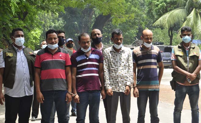 একজনের কোমরে পিস্তল ঝোলানো, একজনের হাতে ওয়াকিটকি। আরেকজনের হাতে থাকে হ্যান্ডকাফ। সবার গায়েই ডিবি পুলিশের জ্যাকেট। রাস্তায় চেকপোস্ট বসিয়ে রীতিমতো তল্লাশি চালাতো তারা। কিন্তু তারা কেউ সত্যিকারের পুলিশ বা আইনশৃঙ্খলা বাহিনীর সদস্য নন। ডাকাতি-ছিনতাইয়ের উদ্দেশ্যে ডিবি পুলিশের ছদ্মবেশ ধরতো তারা। রাজধানী ঢাকা ও আশপাশের জেলা শহরের নির্জন রাস্তায় তারা এসব করে বেড়াতো। ঢাকা মহানগর গোয়েন্দা পুলিশের তেজগাঁও বিভাগের একটি দল গত মঙ্গলবার সন্ধ্যায় মোহাম্মদপুরের বছিলা এলাকা থেকে এই চক্রের চার সদস্যকে গ্রেফতার করেছে। গ্রেফতারকৃতরা হলো- মানিক ব্যাপারী ওরফে দারোগা মানিক (৩৫), জাহিদ হাসান ওরফে রেজাউল (২৮), ফারুক হোসেন ওরফে নাসির উদ্দিন (৪০) ও রুবেল সিকদার ওরফে রুস্তম (৩০)। তাদের কাছ থেকে ডিবি পুলিশ লেখা জ্যাকেট, একটি বন্দুক, একটি খেলনা পিস্তল, ওয়াকিটকি, একটি ওয়ারলেস সেটসহ ডাকাতি ও ছিনতাইকাজে ব্যবহৃত ধারালো অস্ত্র উদ্ধার করা হয়েছে। ঢাকা মহানগর গোয়েন্দা পুলিশের যুগ্ম কমিশনার (উত্তর) হারুন অর রশিদ জানান, গ্রেফতারকৃতরা সংঘবদ্ধ ডাকাত ও ছিনতাইকারী দলের সদস্য। তারা ঈদুল আযহা উপলক্ষে পশুর হাটে আগত ব্যাপারী ও ক্রেতাদের ডাকাতি-ছিনতাই করার পরিকল্পনা করছিলো। তারা ডিবি পুলিশ পরিচয় দিয়ে রাজধানী ও আশপাশের এলাকায় চেকপোস্ট বসিয়ে তল্লাশির নামে সর্বস্ব লুটে নিতো। পুলিশের এই কর্মকর্তা বলেন, একটি চক্র দীর্ঘদিন ধরে ডিবি পুলিশ পরিচয়ে ডাকাতি-ছিনতাই করে আসছিল। কিন্তু ডিবি পুলিশ বিশেষ প্রয়োজন ছাড়া সবসময় বা সব জায়গায় চেকপোস্ট বসায় না। পুলিশ পরিচয়ে কেউ তল্লাশি করতে চাইলে তার পরিচয় নিশ্চিত করার আহ্বান জানান তিনি। আশপাশে পোশাকে অন-ডিউটিতে থাকা অন্য পুলিশ সদস্যদের মাধ্যমে পরিচয় নিশ্চিত হওয়ার কথাও বলেন তিনি। গোয়েন্দা পুলিশের কর্মকর্তারা জানান, এই চক্রের মূলহোতা হলো ‘মানিক দারোগা’। ডিবি পুলিশ পরিচয়ে ডাকাতি-ছিনতাই করার সময় সে টিম লিডার হিসেবে নিজেকে দারোগা বা সাব-ইন্সপেক্টর পরিচয় দিতো। এজন্য চক্রের সবাই তাকে মানিক দারোগা বলে ডাকে। এই চক্রের সদস্যরা একাধিকবার ডিবি পরিচয়ে ডাকাতি-ছিনতাই করতে গিয়ে আইনশৃঙ্খলা বাহিনীর হাতে গ্রেফতার হয়েছে। কিন্তু গ্রেফতারের পর কিছুদিন কারাগারে থাকলেও আদালতের মাধ্যমে জামিন নিয়ে বাইরে এসে আবারও একই কাজে লিপ্ত হতো তারা। গোয়েন্দা কর্মকর্তারা জানান, গত ৭ জুন গাজীপুরের লিবার্টি নিট ওয়্যার নামে একটি গার্মেন্টস কারখানার দুই কর্মকর্তা শাহজালাল ইসলামি ব্যাংকের শফিপুর শাখা থেকে ১৯ লাখ ২৫ হাজার টাকা তুলে মোটরবাইক যোগে কারখানায় ফিরছিলেন। কারখানার শ্রমিক ও স্টাফদের বেতন দেওয়ার জন্য তারা টাকা তুলে নিয়ে যাচ্