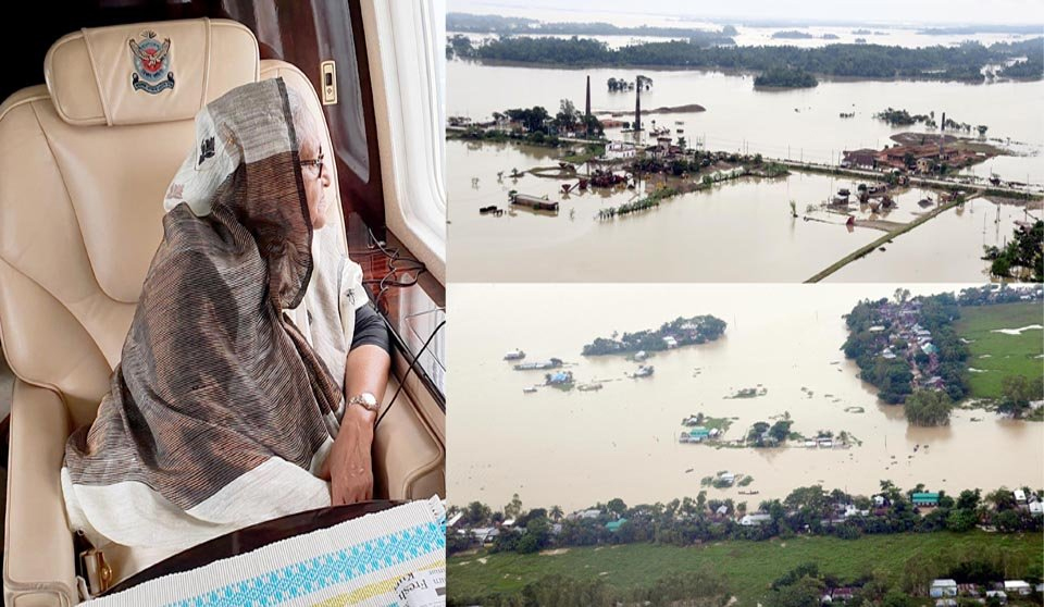 হেলিকপ্টার থেকে ‘লো-ফ্লাই মুডে’ মঙ্গলবার সিলেট, সুনামগঞ্জ, নেত্রকোণা ও তৎসংলগ্ন এলাকার বন্যা পরিস্থিতি পরিদর্শন করেছেন প্রধানমন্ত্রী শেখ হাসিনা।