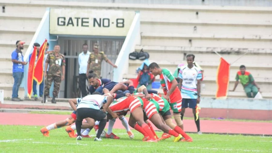 বঙ্গবন্ধু রাগবি সিরিজে প্রথম ম্যাচ জিতে এগিয়ে গেছে বাংলাদেশ। সেভেন-এ সাইডের খেলাতে নেপালকে ২০-০ পয়েন্ট হারিয়েছে স্বাগতিকরা। মঙ্গলবার সকালে আর্মি স্টেডিয়ামে অনুষ্ঠিত ম্যাচে স্বাগতিকরা শুরু থেকে ম্যাচের লাগাম নিজেদের নিয়ন্ত্রণে নিয়ে নেয়। অধিনায়ক নাদিম সর্বোচ্চ ১০ পয়েন্ট সংগ্রহ করেন। এ ছাড়া আনোয়ারুজ্জামন ও সোহেল আহমেদ ৫ পয়েন্ট পেয়েছেন। বিকালে একই স্টেডিয়ামে তিন ম্যাচের সিরিজের দ্বিতীয় ম্যাচ খেলবে দুই দল। বাংলাদেশ-নেপাল সিরিজের উদ্বোধন করেন ক্রীড়া প্রতিমন্ত্রী জাহিদ আহসান রাসেল। এ সময় আরও উপস্থিত ছিলেন এশিয়ান রাগবির সভাপতি কায়েস আব্দুল্লাহ আল ধালাইসহ অন্যরা।