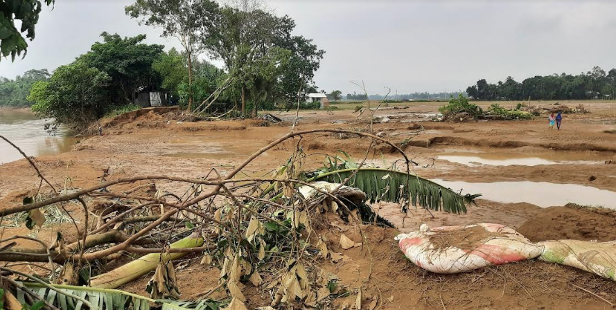 বন্যায় প্রায় ৪শতাধিক ঘর-বাড়ি ক্ষতিগ্রস্থ্য হয়েছে; পানি বন্দি বহু পরিবার