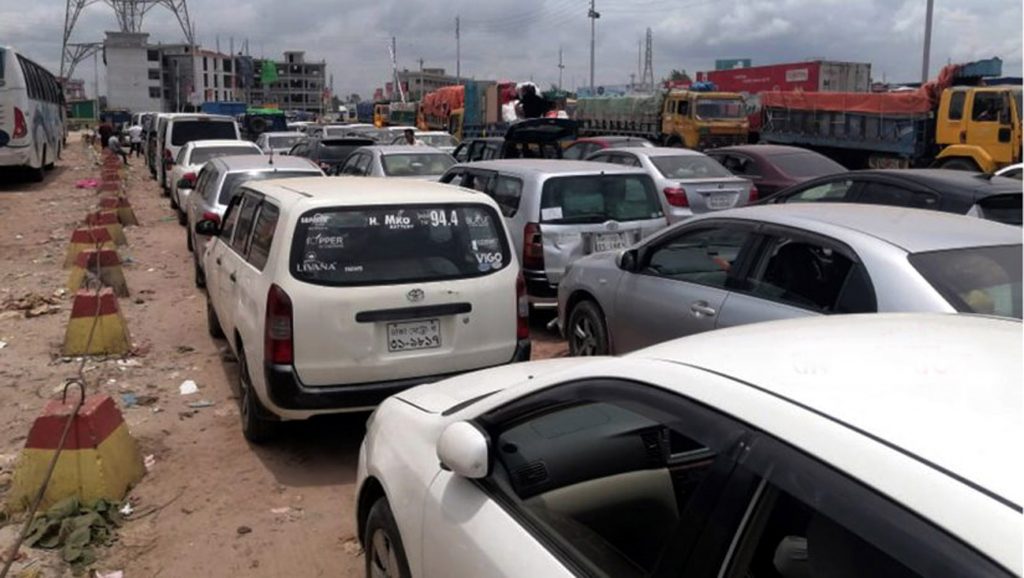 ঈদুল আযহাকে কেন্দ্র করে মুন্সিগঞ্জের শিমুলিয়া ঘাটে আজও দেশের দক্ষিণবঙ্গগামী ঘরমুখো মানুষ ও যানবাহনের চাপ রয়েছে। বিধিনিষেধ শিথিলের দ্বিতীয় দিন শুক্রবার (১৬ জুলাই) সকাল হতে রাজধানী ঢাকাসহ দেশের বিভিন্ন প্রান্ত থেকে ছোট-বড় যানবাহনে চড়ে যাত্রীরা ঘাটে উপস্থিত হচ্ছেন। ঘাটে আসা যাত্রীরা ফেরি ও লঞ্চে যোগে পদ্মা পারাপার হচ্ছেন। এদিকে গণপরিবহন ও ব্যক্তিগত গাড়ির চাপ বাড়ায় ফেরিতে যানবাহন পারাপারে বেগ পেতে হচ্ছে। এতে ঘাটে পারাপারের অপেক্ষায় রয়েছে ৬ শতাধিক ব্যক্তিগত গাড়ি ও পণ্যবাহী ট্রাক। বাড়তি গাড়ির চাপে ব্যক্তিগত ও গণপরিবহনে আসা যাত্রীদেরও নদী পারাপারে অপেক্ষা করতে হচ্ছে দীর্ঘক্ষণ। এদিকে শিমুলিয়া-বাংলাবাজার নৌরুটে লঞ্চ সচল থাকায় ফেরিতে যাত্রী চাপ ও গাদাগাদি কমে এসেছে। তবে লঞ্চগুলোতে মানা হচ্ছে না স্বাস্থ্যবিধি। অর্ধেক যাত্রী ধারণের কথা থাকলেও অধিকাংশ লঞ্চে অধিক যাত্রী নিয়ে চলাচল করছে। সরজমিনে দেখা যায়, লঞ্চঘাটে শতশত যাত্রীদের ঢল। ফেরিঘাটের অভিমুখে পার্কিং ইয়ার্ডে যানবাহনের দীর্ঘ সারি। ব্যক্তিগত ও পণ্যবাহী ছোট-বড় শতশত গাড়ি পারাপারের জন্য অপেক্ষা করছে। এতে অপেক্ষারত যাত্রীদের ভোগান্তি পোহাতে হচ্ছে। বাংলাদেশ অভ্যন্তরীণ নৌ-পরিবহন কর্তৃপক্ষ (বিআইডাব্লিউটিএ) শিমুলিয়া নদী বন্দর কর্মকর্তা শাহাদাত হোসেন বলেন, ১৩টি ফেরি ও ৮২টি লঞ্চ সচল রয়েছে। এ বিষয়ে বিআইডাব্লিউটিএ শিমুলিয়াঘাটের সহকারী উপ-মহাব্যবস্থাপক শফিকুল ইসলাম জানান, পর্যায়ক্রমে সব যানবাহন পারাপার করা হবে। লঞ্চ চালু হওয়ায় ফেরিতে যাত্রী চাপ কমেছে। তবে গণপরিবহন ও প্রচুর ব্যক্তিগত গাড়ি ঘাটে আসায় পণ্যবাহী ট্রাকে পারপারে বেগ পেতে হচ্ছে।