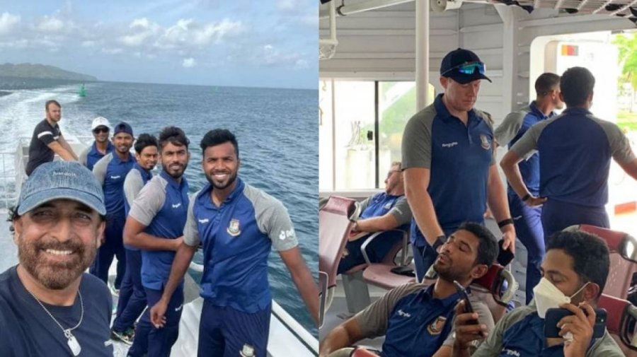 সেন্ট লুসিয়া থেকে ডোমিনিকা যাওয়ার সহজ উপায় সমুদ্রপথ। বিমানে হলে অ্যান্টিগা ঘুরে যেতে হয়, ফলে অনেক সময় প্রয়োজন। এ ছাড়া যেসব বিমান আছে, সেগুলো খুবই ছোট। টিকিটও দুষ্প্রাপ্য এবং ব্যয়বহুল। এ কারণে স্বাগতিক দল ছাড়াও বাংলাদেশ দল এবং ম্যাচ অফিসিয়ালরা ফেরিতে করেই সেন্ট লুসিয়া থেকে ডোমিনিকায় যাত্রা করে। কিন্তু সেই যাত্রা পথে অসুস্থ হয়ে পড়েন বাংলাদেশ দলের বেশ কয়েকজন। ক্রিকেটারদের সমুদ্রযাত্রা নিয়ে সামাজিক যোগাযোগ মাধ্যমগুলোতে ব্যাপক সমালোচনা হয়। মঙ্গলবার (৫ জুলাই) মিরপুর শেরেবাংলা স্টেডিয়ামে বাংলাদেশ ক্রিকেট বোর্ডের (বিসিবি) প্রধান নির্বাহী কর্মকর্তা নিজামউদ্দিন চৌধুরী সংবাদমাধ্যমে বিষয়টি নিয়ে কথা বলেছেন। তিনি জানিয়েছেন, ফ্লাইট কম থাকার কারণে ওয়েস্ট ইন্ডিজ ক্রিকেট বোর্ডের ‘সিদ্ধান্ত’ মেনে নিতে হয়েছিল বিসিবিকে। নিজামউদ্দিন বলেছেন, ‘আমি ব্যক্তিগতভাবে মনে করি বিষয়টা যেভাবে এসেছে, আসলে ওরকম ছিল না। আমাদের সঙ্গে যখন ওয়েস্ট ইন্ডিজ ক্রিকেট বোর্ড যোগাযোগ করে আমরা কিন্তু সঙ্গে সঙ্গেই আমাদের উদ্বেগ জানিয়েছিলাম। আমাদের দলের এই ধরনের ভ্রমণের অভিজ্ঞতা নেই। এটা আমরা জানিয়েছিলাম। পরবর্তীতে ওয়েস্ট ইন্ডিজ ক্রিকেট বোর্ড জানায়- বর্তমান পরিস্থিতিতে অনেক ফ্লাইট বন্ধ হয়ে গেছে, বিভিন্ন এয়ারলাইন্সের বিমান চলাচল সীমাবদ্ধ হয়ে গেছে, খুব ছোট ছোট বিমান এখানে যাতায়াত করে।’ এরপরই ক্যারিবিয়ান ক্রিকেট বোর্ড ফেরির বিষয়টি জানায়। বিসিবির প্রধান নির্বাহীর ভাষায়, ‘একইসঙ্গে আমাদের জানালো তারা ফেরি সার্ভিসের ব্যবস্থা করছে, যা ছোট ক্রুজ শিপের মতো। এটা নিয়মিত চলাচল করে এবং বাংলাদেশ দল, ওয়েস্ট ইন্ডিজ দল, আইসিসির অফিসিয়াল, টিভি ক্রু ও ধারাভাষ্যকাররা একইসঙ্গে যাবেন। এই বিষয় নিশ্চিত করার পর আমাদেরও আলোচনা থামিয়ে দিতে হয়। কারণ দুই দল একইসঙ্গে ট্রাভেল করছে। তখন বিষয়টা মেনে নিতে হয়। যখন আমাদের দল কোনও দেশে যাবে, যাবতীয় সব দায়িত্ব ওই বোর্ডেরই। যেমন কোনও বিদেশি দল এলে আমাদের ওপর নির্ভর করতে হয়।’ বাংলাদেশের ক্রিকেটারদের সমুদ্র ভ্রমণের অভিজ্ঞতা না থাকার কারণেই কিছুটা অস্বস্তি দেখা দিয়েছে বলে জানালেন তিনি, ‘ফেরিযাত্রাও আবহাওয়ার অবস্থা দেখে একদিন পিছিয়েছে। এ ধরনের ভ্রমণে কিছু মোশন সিকনেস হয়। এটার ব্যাপারেও সতর্ক করা হয়েছে, কী কী গাইডলাইন মানতে হবে, আগে বলা হয়েছে। এটা যে একদম অস্বাভাবিক কিছু তা কিন্তু না। সমুদ্রে নড়াচড়ার সময় এসব সমস্যা হয়। শুধু বাংলাদেশ দলের খেলোয়াড়রাই অসুস্থ হয়েছেন তা না। বাজে আবহাওয়ার কারণে ওয়েস্ট ইন্ডিজের খেলোয়াড়দেরও একইরকম অবস্থা হয়েছে। কিন্তু আমাদের খেলোয়াড় ও সাপোর্ট স্টাফ