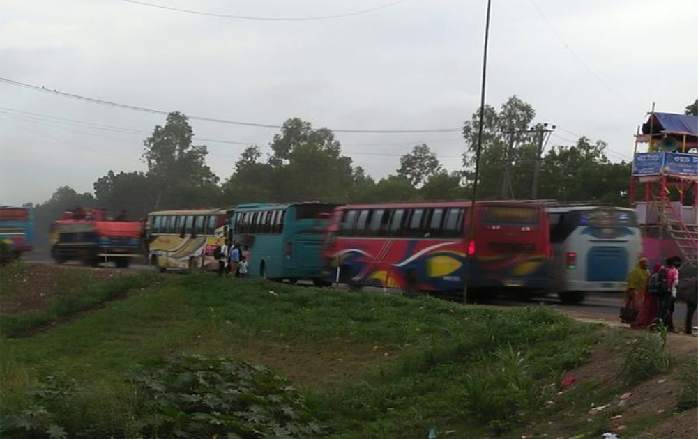 বিকাল ৪টায় সরেজমিন দেখা যায়, বড় গাড়ি ছাড়াও ট্রাক, পিকআপ ভ্যান, মোটরসাইকেল এমনকি গাড়ির ছাদেও মানুষের উপচে পড়া ভিড় রয়েছে। ঈদ উদযাপন করতে যে যেভাবে পারছেন বাড়ি ফিরছেন। এর ফলে নানা ভোগান্তিরও শিকার হতে হচ্ছে সাধারণ যাত্রীদের।