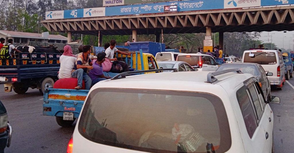 গত ২৪ ঘণ্টায় টাঙ্গাইলে বঙ্গবন্ধু সেতুতে গণপরিবহন ছাড়াও অন্যান্য পরিবহন মিলিয়ে প্রায় ৩৩ হাজার পরিবহন সেতু পারাপার হয়েছে। এতে টোল আদায় হয়েছে ২ কোটি ৮২ লাখ ৯০ হাজার ৫৬০ টাকা। বঙ্গবন্ধু সেতু কর্তৃপক্ষ সূত্রে জানা গেছে, গত শনিবার সকাল ৬টা থেকে রোববার (১৮ জুলাই) সকাল ৬টা পর্যন্ত গেল ২৪ ঘণ্টায় যাত্রীবাহী বাস, ট্রাক, প্রাইভেটকার, মাইক্রোবাস, মোটরসাইকেলসহ অন্যান্য পরিবহন মিলিয়ে ৩২ হাজার ৭১৩টি পরিবহন বঙ্গবন্ধু সেতু পারাপার হয়েছে। এতে সেতুতে টোল আদায় হয়েছে ২ কোটি ৮২ লাখ ৯০ হাজার ৫৬০ টাকা। এর মধ্যে বঙ্গবন্ধু সেতুপূর্ব টোলপ্লাজায় ১৭ হাজার ৪৩ পরিবহনের বিপরীতে টোল আদায় হয়েছে এক কোটি ৪৩ লাখ ৬৭ হাজার ৫৯০ টাকা এবং বঙ্গবন্ধু সেতু পশ্চিম টোলপ্লাজায় ১৫ হাজার ৬৭০টি পরিবহনের বিপরীতে টোল আদায় হয়েছে ১ কোটি ৩৯ লাখ ২২ হাজার ৯৭০ টাকা। তবে শুক্রবার এই টোল আদায়ের পরিমাণ ছিল ২ কোটি ৯২ লাখ ৭৪ হাজার ৮০০ টাকা। যা গেল ২৪ ঘণ্টায় প্রায় ১০ লাখ টাকা টোল আদায় কমেছে। কমেছে পরিবহনের সংখ্যাও। বাংলাদেশ সেতু কর্তৃপক্ষের বঙ্গবন্ধু সেতুর সাইট কার্যালয়ের নির্বাহী প্রকৌশলী আহসানুল কবীর পাভেল জানান, গেল ২৪ ঘণ্টায় বঙ্গবন্ধু সেতুতে যে টোল আদায় হয়েছে সেটা তার আগের ২৪ ঘণ্টার চেয়ে কম। রোববারও (১৮ জুলাই) মহাসড়কে পরিবহনের ব্যাপক চাপ রয়েছে। গত শনিবার সকাল থেকে রোববার (১৮ জুলাই) সকাল পর্যন্ত ২ কোটি ৮২ লাখ ৯০ হাজার ৫৬০ টাকা টোল আদায় হয়েছে। এ সময় সেতু দিয়ে পারাপার হয়েছে ৩২ হাজার ৭১৩টি পরিবহন।