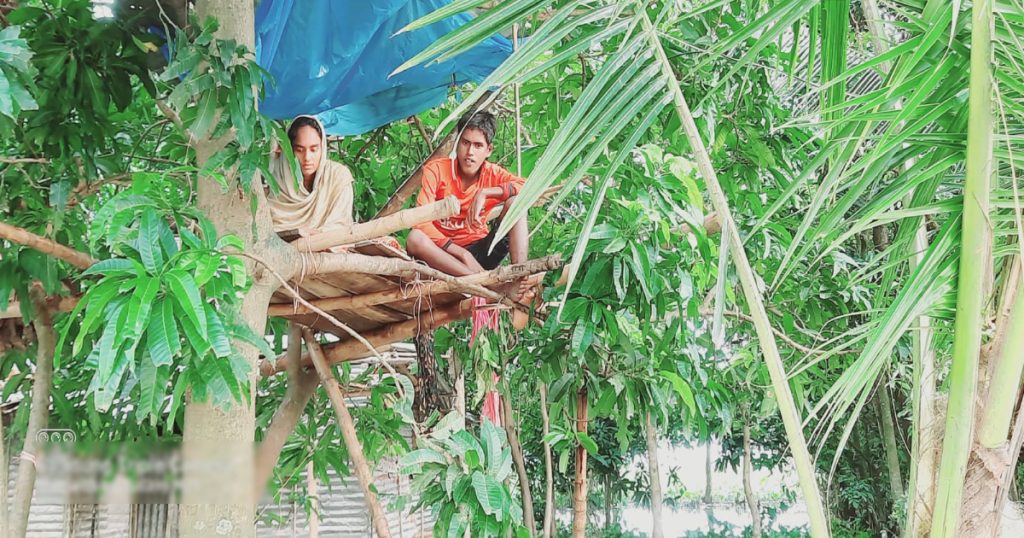 বন্যায় ঘর হারিয়ে এতিম দুই ভাই-বোন গাছের ডালে বাস করেছে। ১৭ দিন মাঁচা বেঁধে থাকার পর এখন তারা এক প্রতিবেশির বাড়িতে আশ্রয় নিয়েছে। সুনামগঞ্জের শান্তিগঞ্জ উপজেলার শিমুলবাক ইউনিয়নের ঢালাগাঁও গ্রামে এ ঘটনা ঘটেছে।