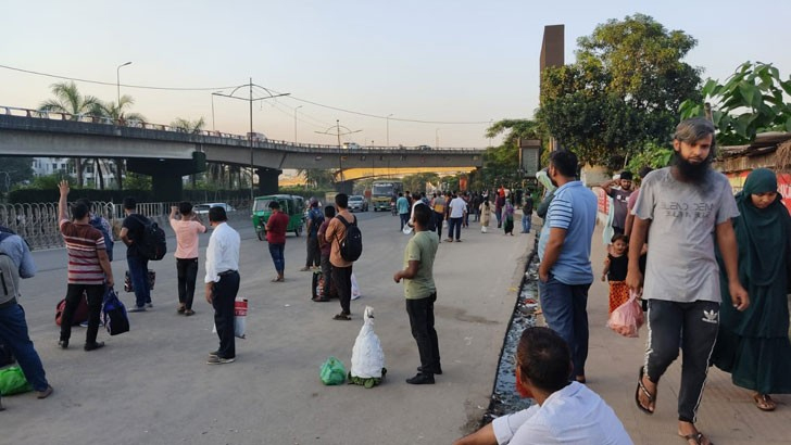 এ ছাড়া রাজধানীতে গণপরিবহনের সংকটও ছিল। টার্মিনালের বিপরীতমুখী রাস্তায় যাত্রীদের নিতে বিভিন্ন রুটের একাধিক বাস দাঁড়িয়ে থাকতে দেখা গেছে। যাত্রীদের জোর করে তুলতে টানাহেঁচড়াও করতে দেখা যায়। সরেজমিনে ঘুরে নিউ নেশন প্রতিনিধি এমনটাই দেখতে পায়।