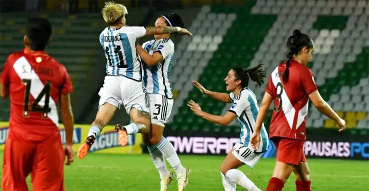 ব্রাজিলের কাছে ০-৪ গোলে পরাজয়ের পর ঘুরে দাঁড়ানো প্রয়োজন ছিল আর্জেন্টিনার নারী ফুটবলারদের। পেরুকে পেয়ে কাঙ্খিত সেই লক্ষ্য অর্জন করে নিয়েছে তারা। বুধবার ভোরে নারী কোপা আমেরিকায় অনুষ্ঠিত নিজেদের দ্বিতীয় ম্যাচে ম্যাচে পেরুকে ৪-০ গোলে রীতিমত বিধ্বস্ত করেছে আর্জেন্টিনা। এই জয়ের ফলে ‘বি’ গ্রুপে তৃতীয় স্থানে উঠে এলো আর্জেন্টাইনরা এবং সেমিতে ওঠার সম্ভাবনাও টিকে থাকলো তাদের। কলম্বিয়ার আর্মেনিয়া শহরের সেন্টেনারিওয় অনুষ্ঠিত ম্যাচটিতে পেরুকে দাঁড়াতেই দেয়নি লিওনেল মেসির দেশের মেয়েরা। ম্যাচের শুরু থেকেই পুরোপুরি প্রভাব বিস্তার করে খেলতে শুরু করে লা আলবিসেলেস্তারা। যে কারণে ম্যাচের ১৮ মিনিটেই গোল আদায় করে নেন ইয়ামিলা রদ্রিগেজ। এস্তেফানিয়া বানিনির দুর্দান্ত প্লে-মেকিংয়ে বল পেয়ে গোল করেন রদ্রিগেজ। প্রথমার্ধে আর কোনো গোল আদায় করতে পারেনি আর্জেন্টিনার প্রমীলা ফুটবলাররা। দ্বিতীয়ার্ধেরন শুরুতেই দ্বিতীয় গোল আদায় করে নেয় আর্জেন্টিনা। ৫২ মিনিটে এই গোলে সবচেয়ে বড় অবদান ছিল ইয়ামিলা রদ্রিগেজের। তার কাছ থেকে বল পেয়ে পেরুর জালে জড়িয়ে দেন ফ্লোরেন্সিয়া বনসেগুন্ডো। ১০ মিনিট পর আবারও গোল। আর্জেন্টিনার হয়ে এই গোলটি করলেন এলিয়ানা স্ট্যাবিলে। ৮৪ মিনিটে পেরুর জালে বল জড়িয়ে একহালি পূরণ করেন এরিকা লোনিগ্রো। ৪-০ গোলে জয়ের ফলে দুই ম্যাচ শেষে গুরুত্বপূর্ণ তিন পয়েন্টের পাশাপাশি গোল ব্যবধানটাও শূন্যতে তুলতে সক্ষম হলো প্রমীলা আর্জেন্টাইনরা। শুক্রবার আর্জেন্টিনা মুখোমুখি হবে উরুগুয়ের। বাংলাদেশ সময় রাত ৩টায় শুরু হবে ম্যাচটি।