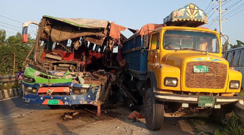 গোড়াই হাইওয়ে থানার ভারপ্রাপ্ত কর্মকর্তা (ওসি) মোল্লা টুটুল বলেন, ভোর সাড়ে ৪টার দিকে দুল্যা মনসুর এলাকায় ‘বিনিময় পরিবহন’ এর বাসটি দাঁড়িয়ে থাকা বালুবোঝাই ট্রাকে পেছন থেকে ধাক্কা দিলে এ দুর্ঘটনা ঘটে।