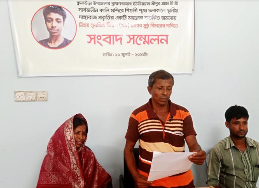 সংবাদ সম্মেলনে নিহত সুরঞ্জিতের বাবা সুধাংশু বিশ্বাস লিখিত বক্তব্য উপস্থাপন করেন। এসময় নিহতের মা সাবিত্রী বিশ্বাস, চাচাতো ভাই রজেন্দ্র বিশ্বাস উপস্থিত ছিলেন। সংবাদ সম্মেলনে সুরঞ্জিতের মায়ের কান্না পরিবেশ ভারি হয়ে উঠে।