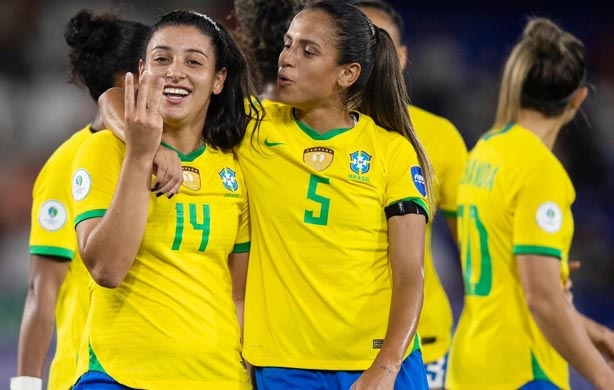চলতি কোপা আমেরিকায় অপ্রতিরোধ্য ব্রাজিল নারী ফুটবল দল। মাঠে নামলেই যেন অন্তত তিন গোল করা চাই তাদের। সেই ধারা বজায় থাকলো পেরুর বিপক্ষে গ্রুপপর্বের শেষ ম্যাচেও। কলম্বিয়ার পাসকুয়েল গুরেইরো স্টেডিয়ামে পেরুকে ৬-০ গোলে উড়িয়ে দিয়েছে ব্রাজিল। তাদের সেমিফাইনাল নিশ্চিত হয়েছিল আগেই। এবার পেরুকে ছয় গোলে হারিয়ে গ্রুপ চ্যাম্পিয়ন হলো সেলেকাওরা। আর্জেন্টিনাকে ৪-০ গোলে উড়িয়ে যাত্রা শুরু করেছিল ব্রাজিল। পরের দুই ম্যাচে উরুগুয়েকে ৩-০ এবং ভেনেজুয়েলাকে ৪-০ গোলে হারায় তারা। গতকলকের ম্যাচে পেরুকে পেয়ে আগের তিন ম্যাচকেও ছাড়িয়ে গেলো পিয়া সুন্ধাগের দল। ম্যাচের প্রথম মিনিটেই গোল করেন দশ নম্বর জার্সির মারিও এডুয়ার্ডা ফ্রান্সেলিনো দা সিলভা। যাকে দুদা নামে ডাকা হয় বেশি। পরে প্রথমার্ধে স্কোরশিটে নাম তোলেন দুদা সাম্পাইও, গিস ফেরেইরা এবং আদালিমা দস সান্তোস। দ্বিতীয়ার্ধে ফিরে আর বেশি গোল করতে পারেনি ব্রাজিল। ম্যাচের ৪৮ মিনিটে ফে পালেরমো এবং ৫০ মিনিটে আদ্রিয়ানা লাল দা সিলভার গোলে হাফ ডজন পূরণ করে তারা। শেষ ৪০ মিনিটে হয়নি আর কোনো গোল। আগামী বুধবার বাংলাদেশ সময় ভোর ৬টায় প্যারাগুয়ের বিপক্ষে সেমিফাইনালে মুখোমুখি হবে ব্রাজিল। আগেরদিন একই সময় আসরের প্রথম সেমিফাইনালে লড়বে স্বাগতিক কলম্বিয়া ও আর্জেন্টিনা।