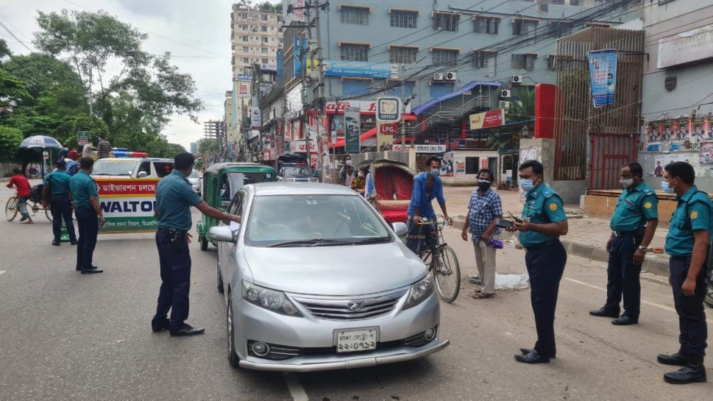 রাজধানীর বিভিন্ন সড়কে চলাচলরত প্রত্যেকটি গাড়িকে থামিয়ে জিজ্ঞাসাবাদের আওতায় এনে তারপর ছাড়া হচ্ছে। যারা বাইরে বের হওয়ার সুনির্দিষ্ট কারণ বলতে পারছেন না, তাদের গাড়ি জরিমানার আওতায় আনা হচ্ছে।