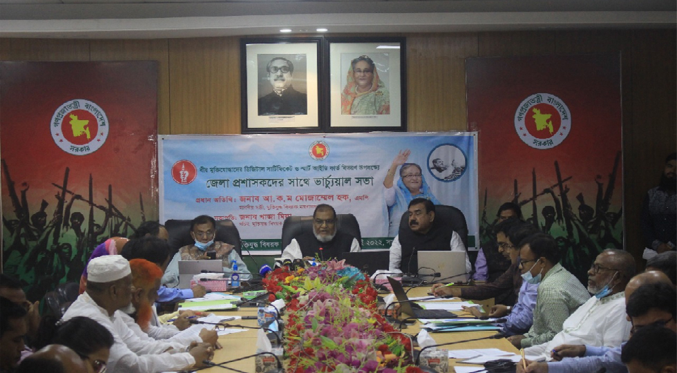 মুক্তিযুদ্ধ বিষয়ক মন্ত্রী আ ক ম মোজাম্মল হক ডিজিটাল সার্টিফিকেট ও স্মার্ট আইডি কার্ড বিতরণ কার্যক্রম উদ্বোধন করেন।
