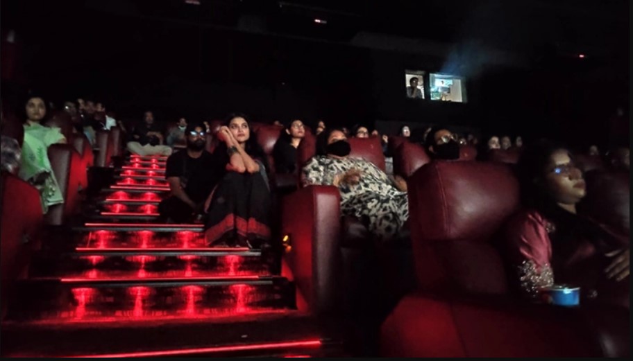 সিঁড়িতে বসে নিজের সিনেমা দেখলেন নায়িকা
