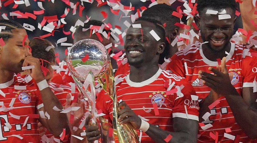 আক্রমণে আধিপত্য করে প্রথমার্ধে তিন গোলে এগিয়ে যাওয়া বায়ার্ন মিউনিখ বিরতির পর কিছুটা খেই হারাল। দারুণভাবে ঘুরে দাঁড়িয়ে ম্যাচ জমিয়ে তুলল লাইপজিগ। কিন্তু শেষ রক্ষা হলো না তাদের। আট গোলের রোমাঞ্চ ছড়ানো ম্যাচ জিতে জার্মান সুপার কাপ ঘরে তুলল ইউলিয়ান নাগেলসমানের দল। বায়ার্নের জার্সিতে প্রতিযোগিতামূলক ফুটবলে অভিষেকটা গোল করে রাঙিয়ে রাখলেন সাদিও মানে। লাইপজিগের রেড বুল অ্যারেনায় শনিবার রাতে জার্মান চ্যাম্পিয়নরা জিতল ৫-৩ গোলে। বায়ার্নের হয়ে একটি করে গোল করেন মানে, জামাল মুসিয়ালা, বাঁজামাঁ পাভার্দ, সের্গে জিনাব্রি ও লেরয় সানে। আরও দুবার জালে বল পাঠিয়েছিলেন মানে। তবে দুবারই অফসাইডের কারণে গোল মেলেনি। জার্মান সুপার কাপে বায়ার্নের এটি টানা তৃতীয় ও রেকর্ড দশম শিরোপা। এর ছয়টিই তারা জিতল সাত মৌসুমের মধ্যে। প্রতি মৌসুমের শুরুতে আগেরবারের বুন্ডেসলিগা ও জার্মান কাপ জয়ীর মধ্যে হয়ে থাকে এক ম্যাচের এই শিরোপা লড়াই। গত মৌসুমে জার্মান কাপ দিয়ে প্রথম মেজর শিরোপা জিতে প্রথমবারের মতো সুপার কাপে খেলার সুযোগ পায় লাইপজিগ। বায়ার্নকে চতুর্দশ মিনিটে এগিয়ে নেন মুসিয়ালা। কর্নার ঠিকমতো ক্লিয়ার করতে পারেনি লাইপজিগ। নিচু শটে গোলটি করেন জার্মান অ্যাটাকিং মিডফিল্ডার। ৩১তম মিনিটে ব্যবধান দ্বিগুণ করেন মানে। বাঁ দিক থেকে জিনাব্রির পাসে ছয় গজ বক্সের মুখে বাঁ পায়ের শটে বল জালে পাঠান গ্রীষ্মের দলবদলে লিভারপুল থেকে বায়ার্নে নাম লেখানো সেনেগালের ফরোয়ার্ড। বিরতির আগে মুসিয়ালার পাস থেকে প্রথম স্পর্শে শটে স্কোরলাইন ৩-০ করেন পাভার্দ। ৫৯তম মিনিটে ব্যবধান কমান মার্সেল হালস্টেনবার্গ। অবশ্য পাঁচ মিনিট পর আবার তিন গোলের লিড পুনরুদ্ধার করেন জিনাব্রি। ৭৭তম মিনিটে পেনাল্টি থেকে আবার ব্যবধান কমান ক্রিস্তোফা এনকুনকু। নির্ধারিত সময়ের এক মিনিট বাকি থাকতে জালের দেখা পান লাইপজিগের স্প্যানিশ মিডফিল্ডার দানি ওলমো; স্কোরলাইন হয়ে যায় ৪-৩, জমে ওঠে লড়াই। এরপর যদিও নাটকীয় কিছু করে দেখাতে পারেনি লাইপজিগ। যোগ করা সময়ের অষ্টম মিনিটে জয় নিশ্চিত করে ফেলেন সানে। ‘গোলমেশিন’ রবের্ত লেভানদোভস্কি ক্লাব ছেড়ে বার্সেলোনায় পাড়ি দেওয়ার পর প্রতিযোগিতামূলক ফুটবলে এটিই বায়ার্নের প্রথম ম্যাচ। পোলিশ তারকাকে ছাড়া শুরুটা শিরোপার হাসিতেই করল তারা।