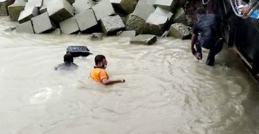 ভোলার ইলিশা ফেরিঘাটে রোববার (২৫ জুলাই) সকালে প্রায় ৫ শতাধিক যাত্রী অপেক্ষা করছিলেন। ফেরি আসার সঙ্গে সঙ্গে হুড়োহুড়ি করে ফেরিতে উঠতে থাকেন যাত্রীরা। একপর্যায়ে পরিস্থিতি নিয়ন্ত্রণে রাখতে নৌ-পুলিশ, কোস্টগার্ড ও র্যাব সদস্যরা ধাওয়া করলে ঢাকামুখী তিন যাত্রী নদীতে পড়ে যায়। পরে তারা সাঁতরে পাড়ে উঠতে সক্ষম হয়। নদীতে পড়ে যাওয়া তিন যাত্রীর মধ্যে একজন রুবেল হোসেন। তার সাথে কথা হলে তিনি বলেন, আমি একটি প্রাইভেট কোম্পানিতে চাকরি করি। দুই দিনের ছুটি নিয়ে বাড়ি আসছিলাম। আজকের মধ্যে ঢাকা পৌঁছাতে না পারলে আমার চাকরিটা থাকবে না। জরুরি ভিত্তিতে ঢাকা যাওয়ার জন্য রওনা দিয়েছিলাম। র্যাবের ধাওয়া ও যাত্রীদের চাপে নদীতে পড়ে যাই। এতে আমার প্রয়োজনীয় সকল কাগজপত্র ভিজে গেছে। এখন আমি কিভাবে কি করব? এদিকে জেলা প্রশাসনের নির্বাহী ম্যাজিস্ট্রেট ও সহকারী কমিশনার (ভূমি) মো. আবু আবদুল্লাহ খান জানান, লকডাউনের মধ্যে ইলিশা ফেরিঘাটে সকাল থেকেই যাত্রীর চাপ ছিল। তাদের বুঝিয়ে বাড়ি ফেরানোর চেষ্টা করছি। ঘাটে ফেরি আসার একপর্যায়ে যাত্রীরা আমাদের বাধা অতিক্রম করে ফেরিতে উঠতে যায়। আইনশৃঙ্খলা বাহিনী তাদের গতিরোধ করলে যাত্রীদের চাপে ঘাটের গ্যাংওয়ে থেকে তিনজন নদীতে পড়ে যায়। পরে স্থানীদের সহায়তায় তাদের উদ্ধার করা হয়। ভোলার জেলা প্রশাসক মো. তৌফিক-ই-লাহী চৌধুরী জানান, ভোলার ফেরি ও লঞ্চঘাটে আমাদের নির্বাহী ম্যাজিস্ট্রেটের নেতৃত্বে একটি টিম, র্যাব, কোস্টগার্ড, নৌ-পুলিশ ও জেলা পুলিশ সদস্যরা অবস্থান করছেন। বিদেশেগামী যাত্রী ও জরুরি প্রয়োজন ছাড়া কাউকে ফেরিতে উঠতে দেওয়া হচ্ছে না। পাশাপাশি বিআইডব্লিউটিএ দায়িত্বরত কর্মকর্তাদের বলা হয়েছে। তারাও যাত্রী পারাপারে কঠোর অবস্থানে আছেন।